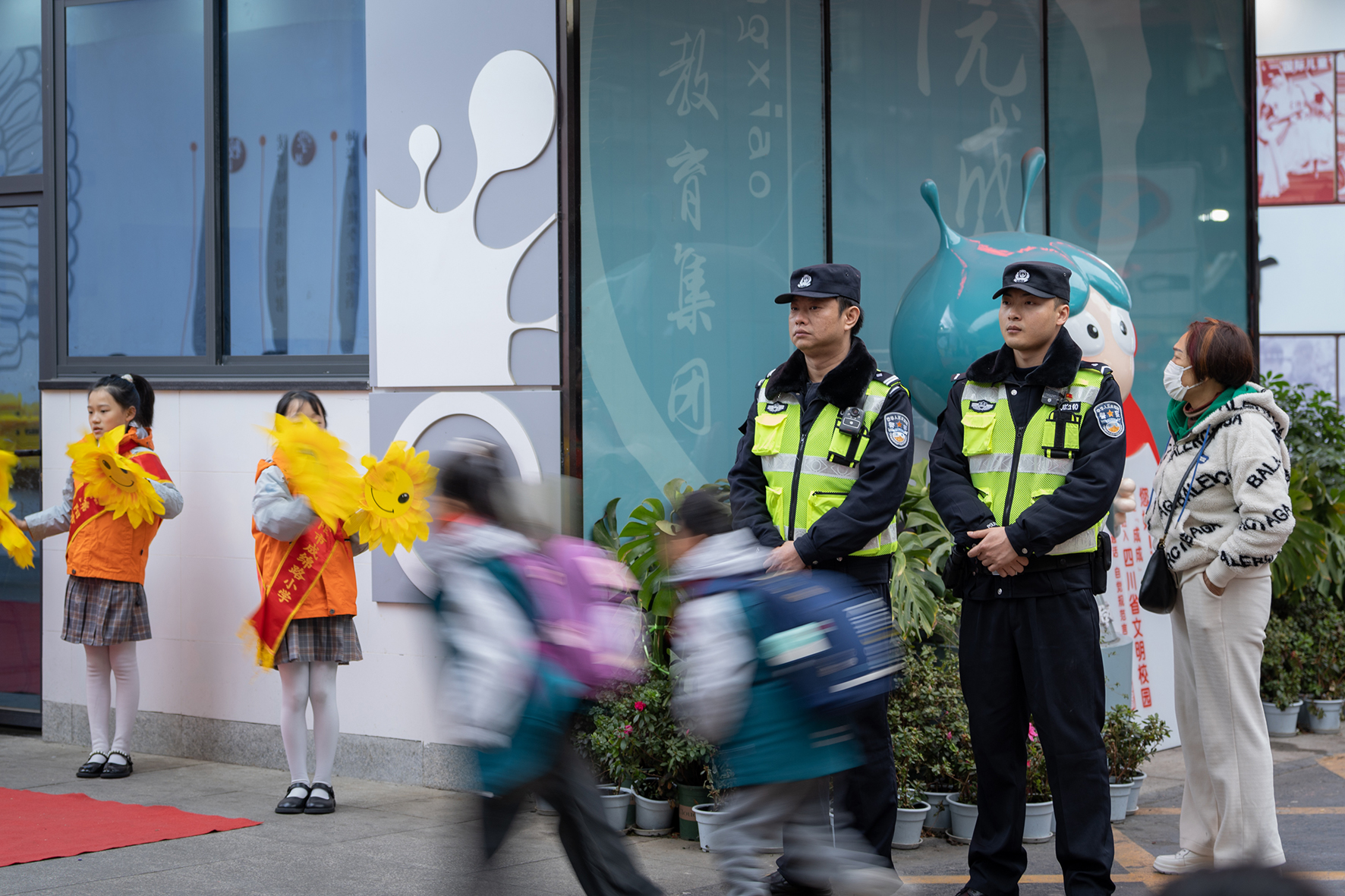 2月26日,四川省綿陽市公安局特巡警支隊民輔警,在涪城區(qū)成綿路小學(xué)站好護(hù)學(xué)“第一崗”。