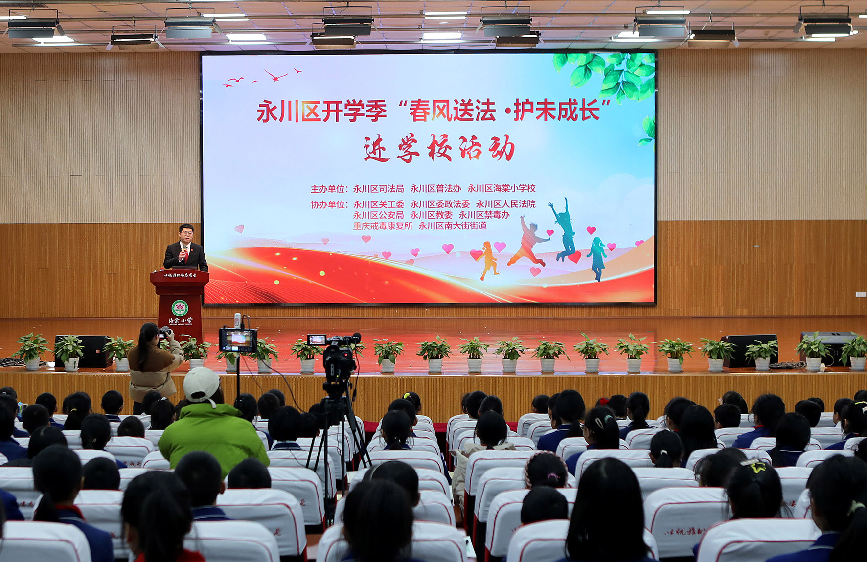 2月27日,重慶市永川區(qū)普法辦會同區(qū)關(guān)工委、區(qū)委政法委、區(qū)法院、區(qū)公安局、區(qū)司法局、區(qū)教委等13家單位,走進海棠小學開展“春風送法 護未成長”法治宣傳活動。