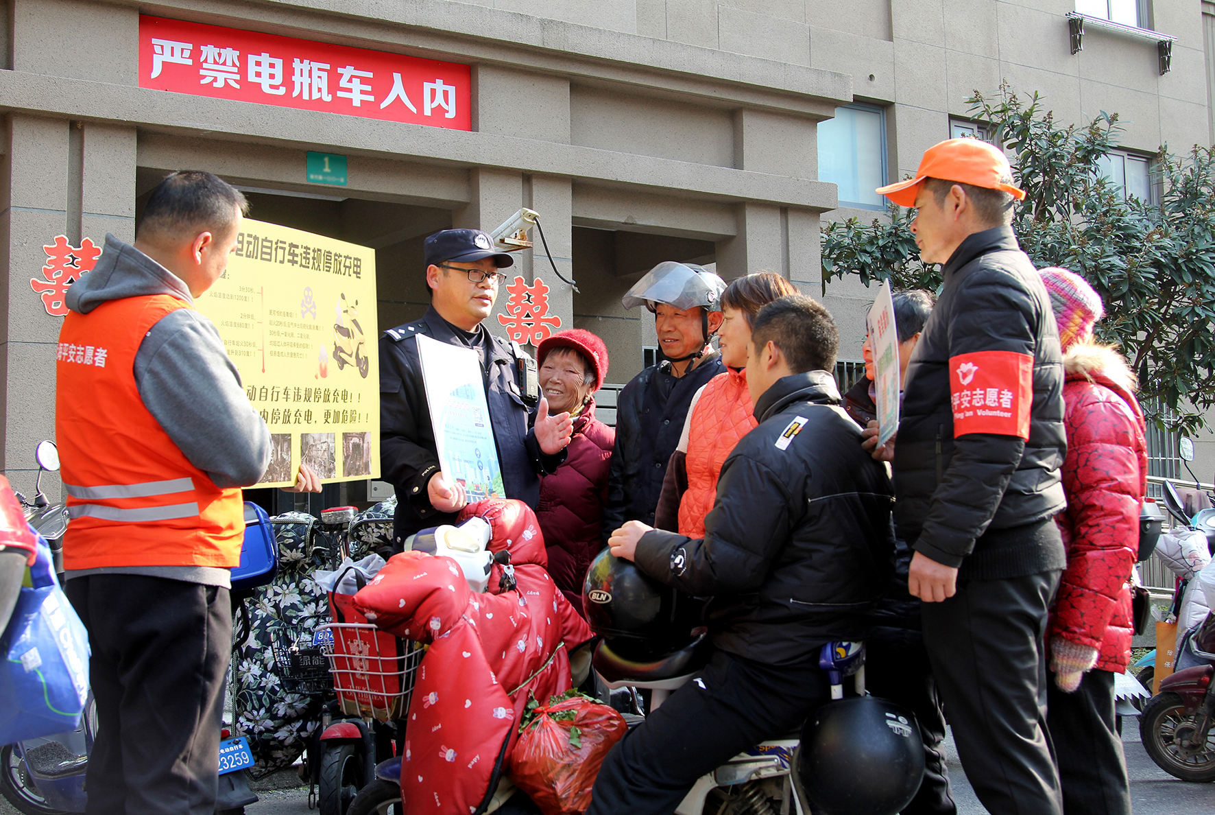 連日來,上海市公安局嘉定分局組織社區(qū)民警會同居(村)委、物業(yè)和平安志愿者等各社會安防力量,全面加強(qiáng)高層住宅小區(qū)、沿街商鋪等電動自行車入樓停放、充電(飛線)和非法改裝銷售等行為的巡查群防、整治查處和安全知識宣傳。
