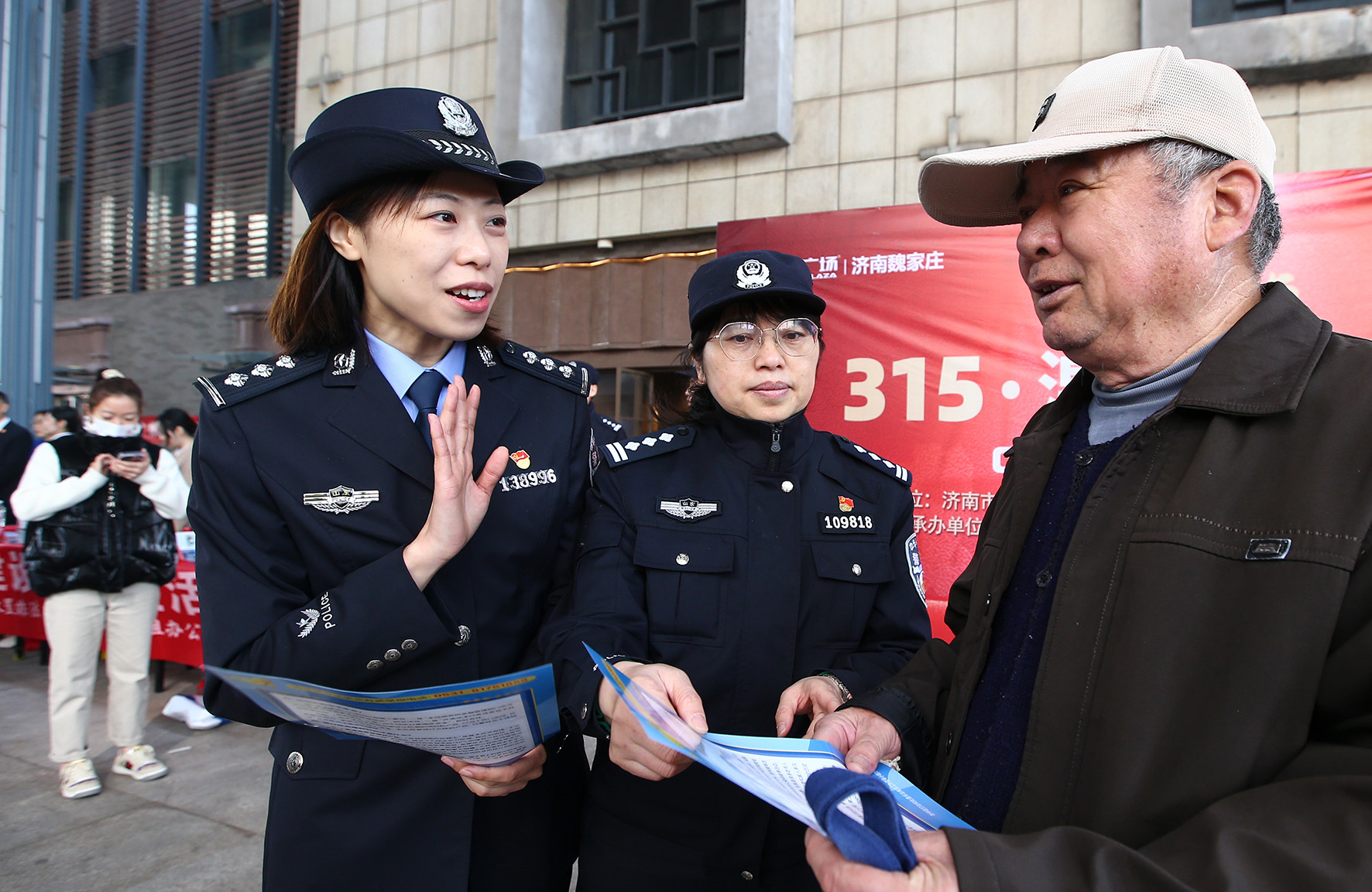 3月14日,在山東省濟(jì)南市經(jīng)四路萬(wàn)達(dá)廣場(chǎng),濟(jì)南市公安局市中區(qū)分局聯(lián)合市中區(qū)市場(chǎng)監(jiān)管局等相關(guān)單位開(kāi)展迎接“3?15”國(guó)際消費(fèi)者權(quán)益日活動(dòng)。