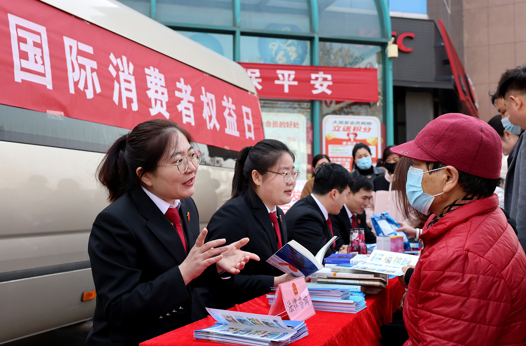 在“3?15”國(guó)際消費(fèi)者權(quán)益日來(lái)臨之際,3月14日,山東省棗莊市市中區(qū)人民法院知識(shí)產(chǎn)權(quán)庭的法官走向街頭開(kāi)展主題宣傳活動(dòng),向市民普及知識(shí)產(chǎn)權(quán)法律知識(shí),維護(hù)消費(fèi)者合法權(quán)益,提高人們的消費(fèi)安全意識(shí)。