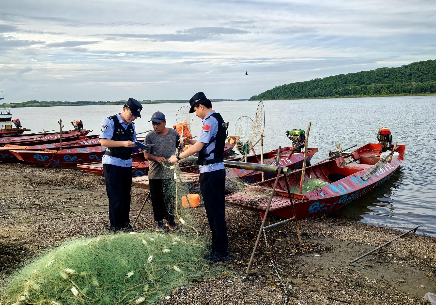 圖為7月28日,饒河縣公安局四排邊境派出所民警在四排赫哲族鄉(xiāng)邊境水域進(jìn)行治安巡查,向漁民開展邊境法律法規(guī)宣傳。