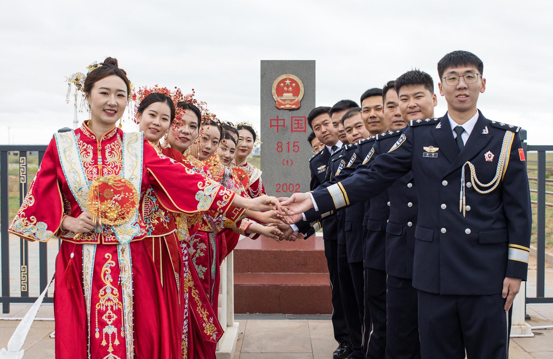 8月11日,駐守在祖國(guó)北大門的內(nèi)蒙古出入境邊防檢查總站二連出入境邊防檢查站,在巍峨壯觀的國(guó)門下為8對(duì)新人舉辦“邊守·邊愛(ài)”第五屆“愛(ài)在北疆 情定國(guó)門”集體婚禮,激發(fā)民警扎根邊疆、奉獻(xiàn)青春、建功立業(yè)的工作熱情。