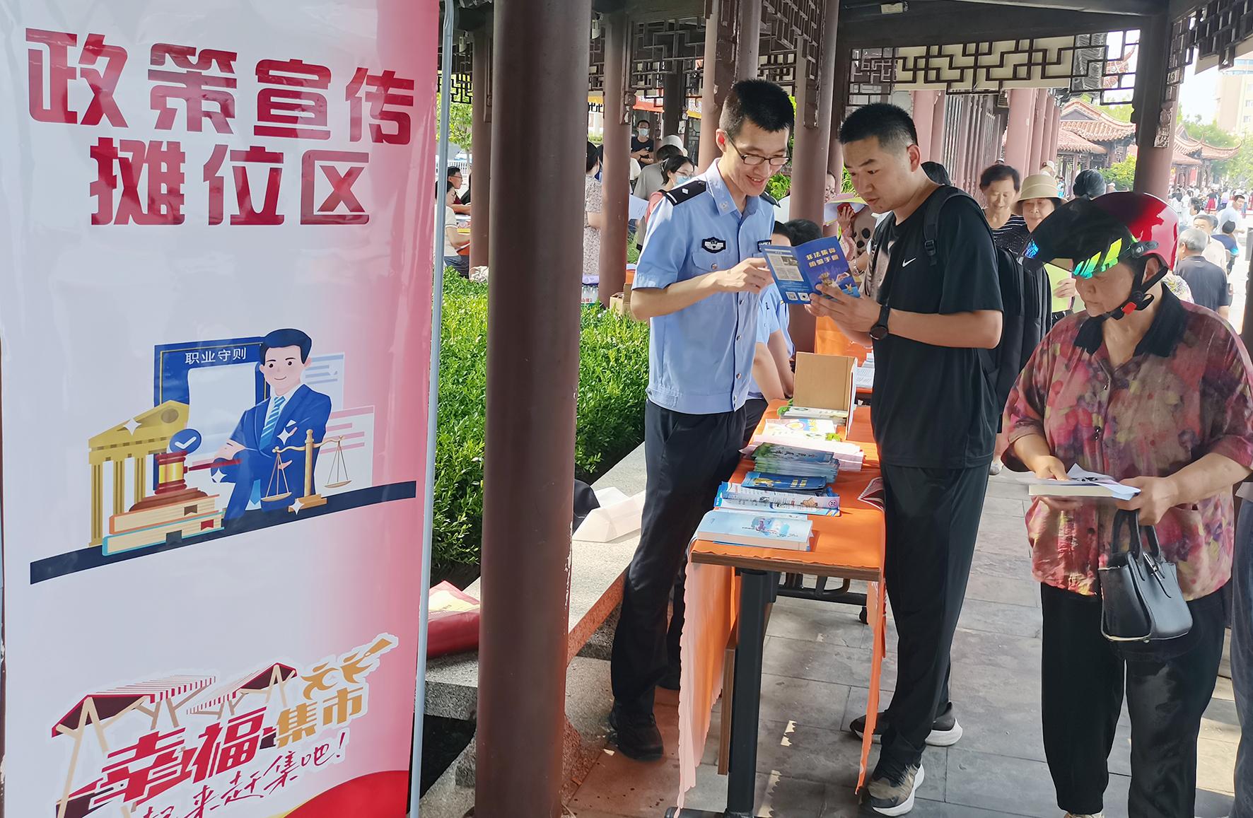 8月17日,山東省煙臺(tái)市長(zhǎng)島綜合實(shí)驗(yàn)區(qū)舉辦“連心暖島·幸福集市”活動(dòng)。煙臺(tái)市公安局長(zhǎng)島分局以此為契機(jī),組織民警來(lái)到活動(dòng)現(xiàn)場(chǎng),向群眾廣泛宣傳防非法集資、禁毒反詐等知識(shí),提高群眾的防范意識(shí)。