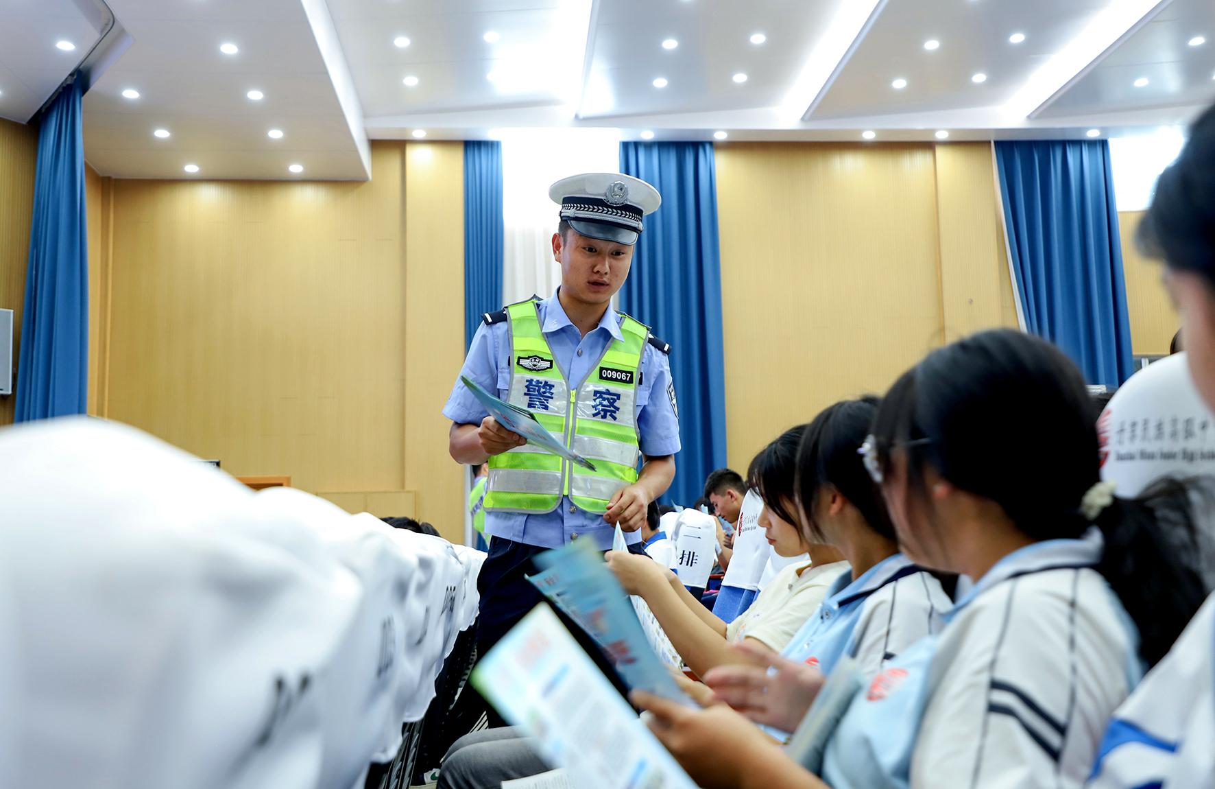 8月27日,貴州省丹寨縣公安局交警大隊組織民警走進轄區(qū)丹寨民族高級中學(xué),向高三年級的同學(xué)們開展“開學(xué)第一課”道路交通安全宣傳。