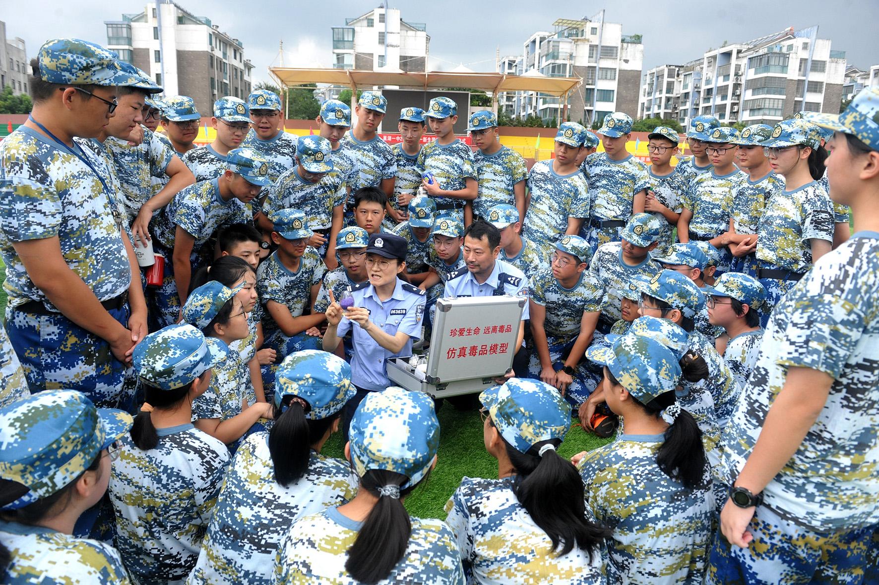 8月27日,安徽省巢湖市公安局禁毒大隊宣傳民警走進巢湖一中,向參加軍訓(xùn)的高一新生介紹毒品的種類、特征以及吸毒的危害,提高他們的識毒、防毒、拒毒意識。
