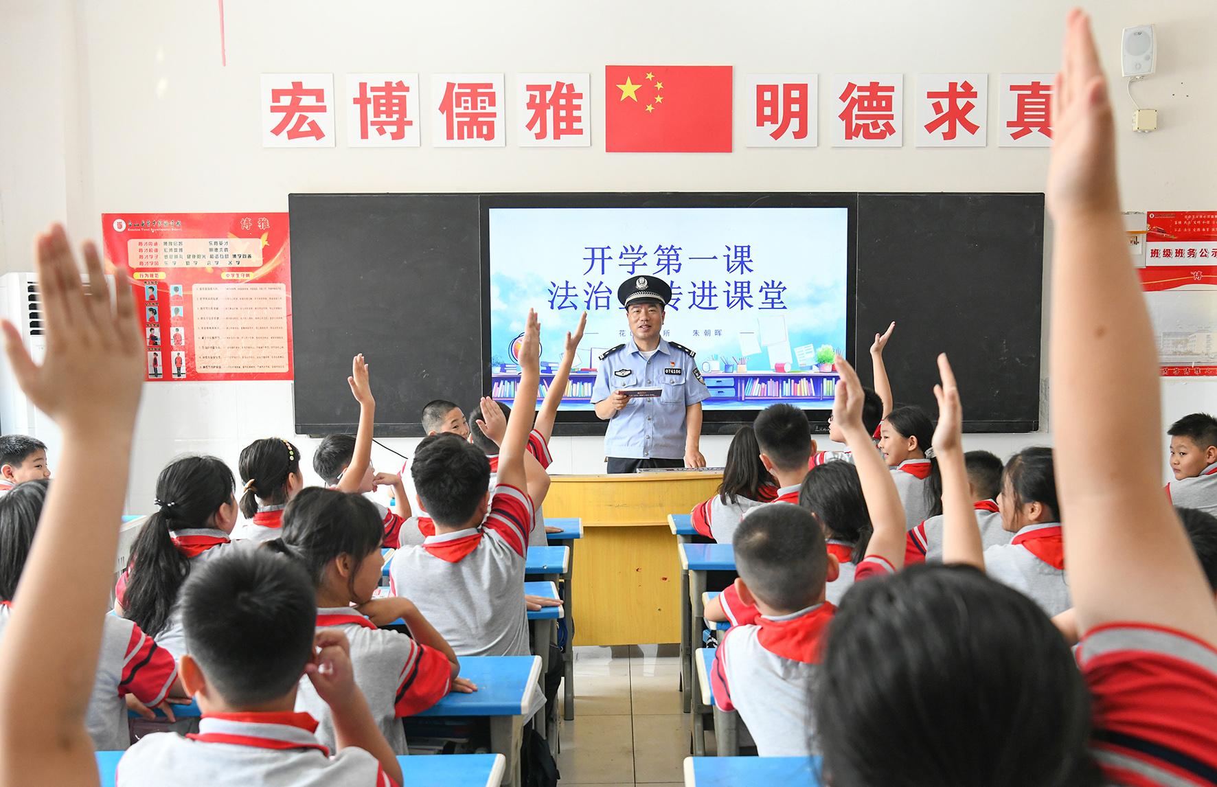 9月2日,山東省濟南市公安局市中區(qū)分局組織民警走進轄區(qū)學(xué)校給學(xué)生普及安全知識,上好開學(xué)“第一課”。