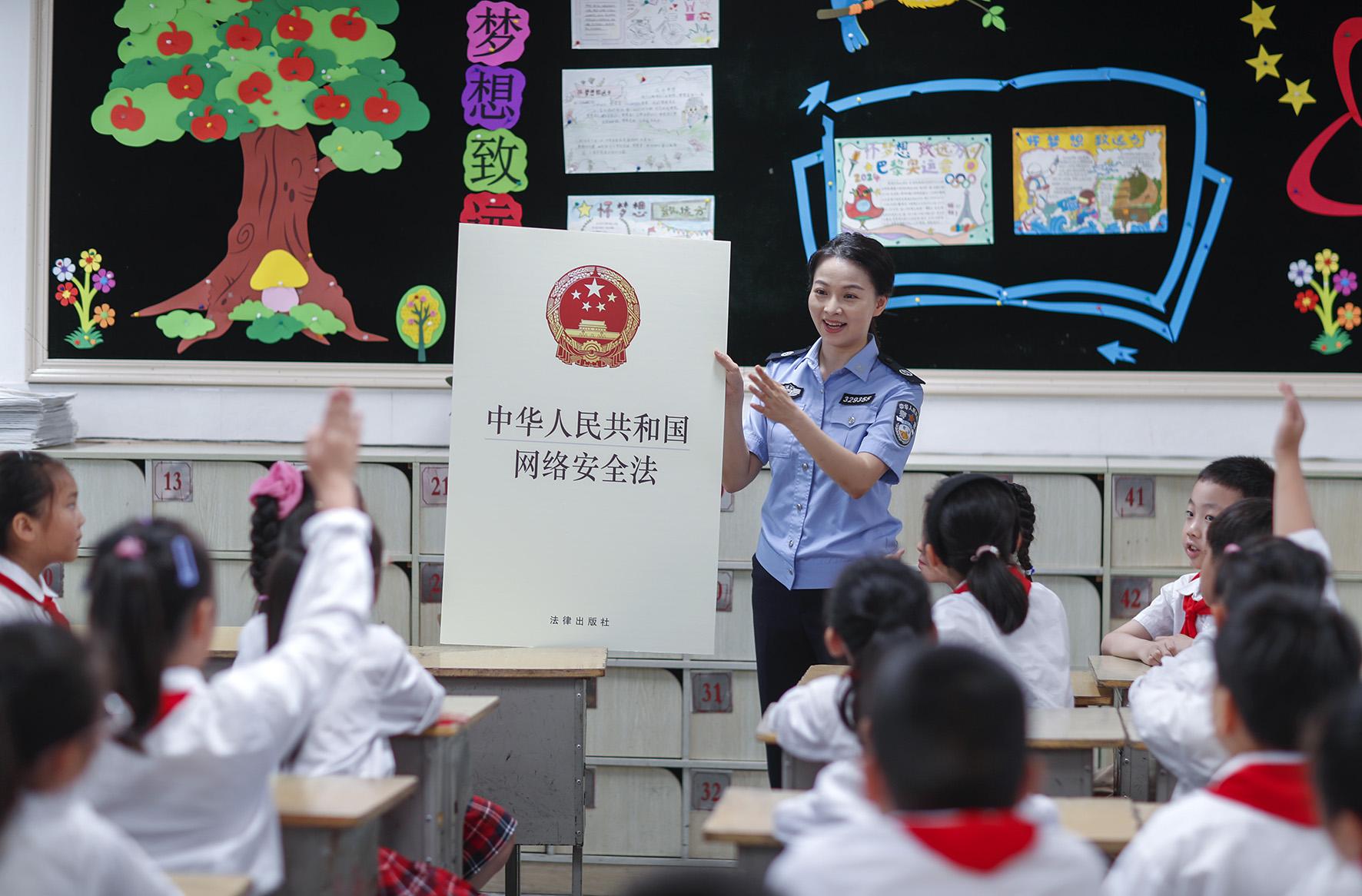 9月9日,上海市公安局崇明分局城橋派出所民警在轄區(qū)學(xué)校向同學(xué)們介紹網(wǎng)絡(luò)安全知識(shí)。