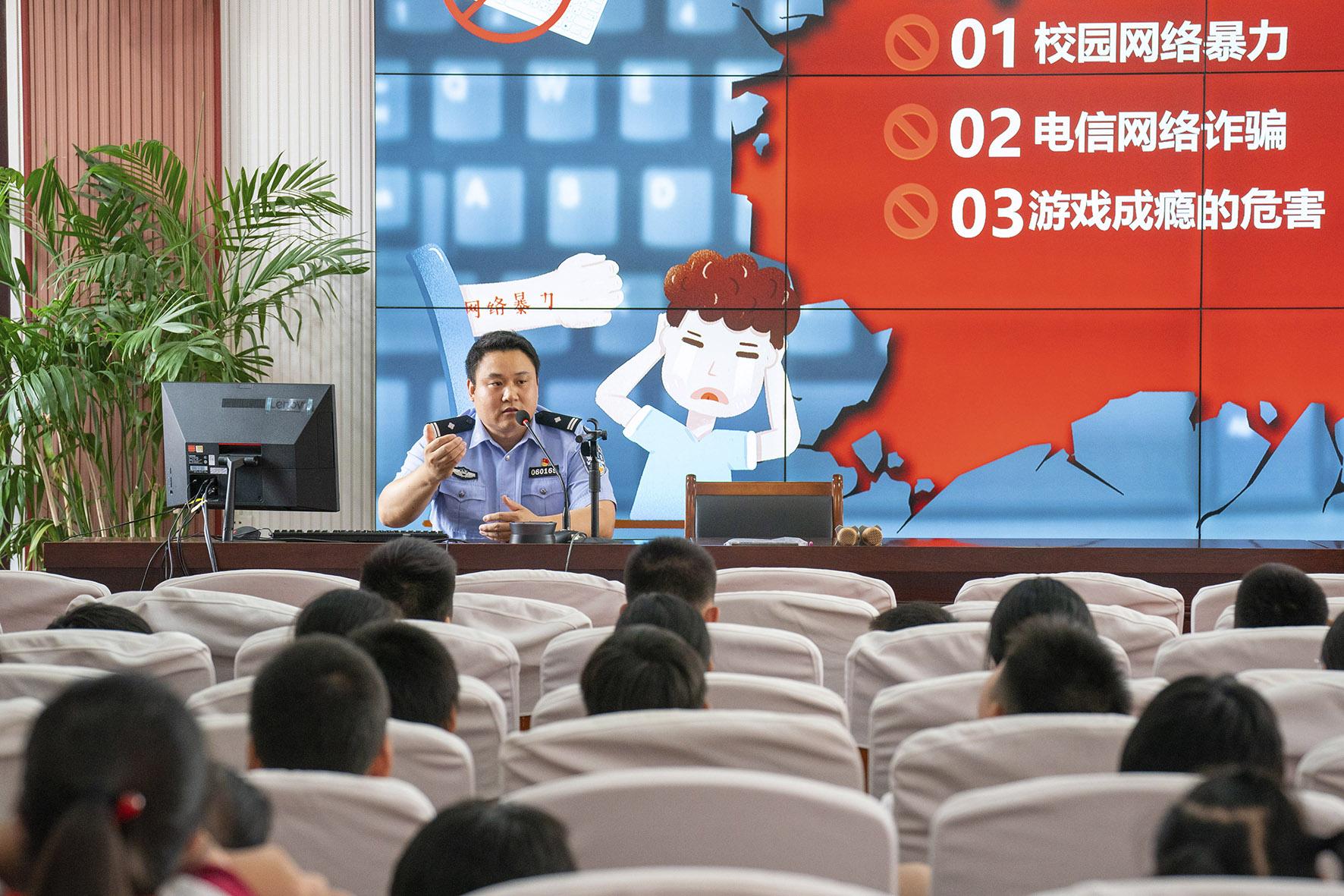 9月11日,江蘇省興化市司法局法治宣講員在興化市景范學(xué)校給學(xué)生們講解網(wǎng)絡(luò)安全知識(shí)。