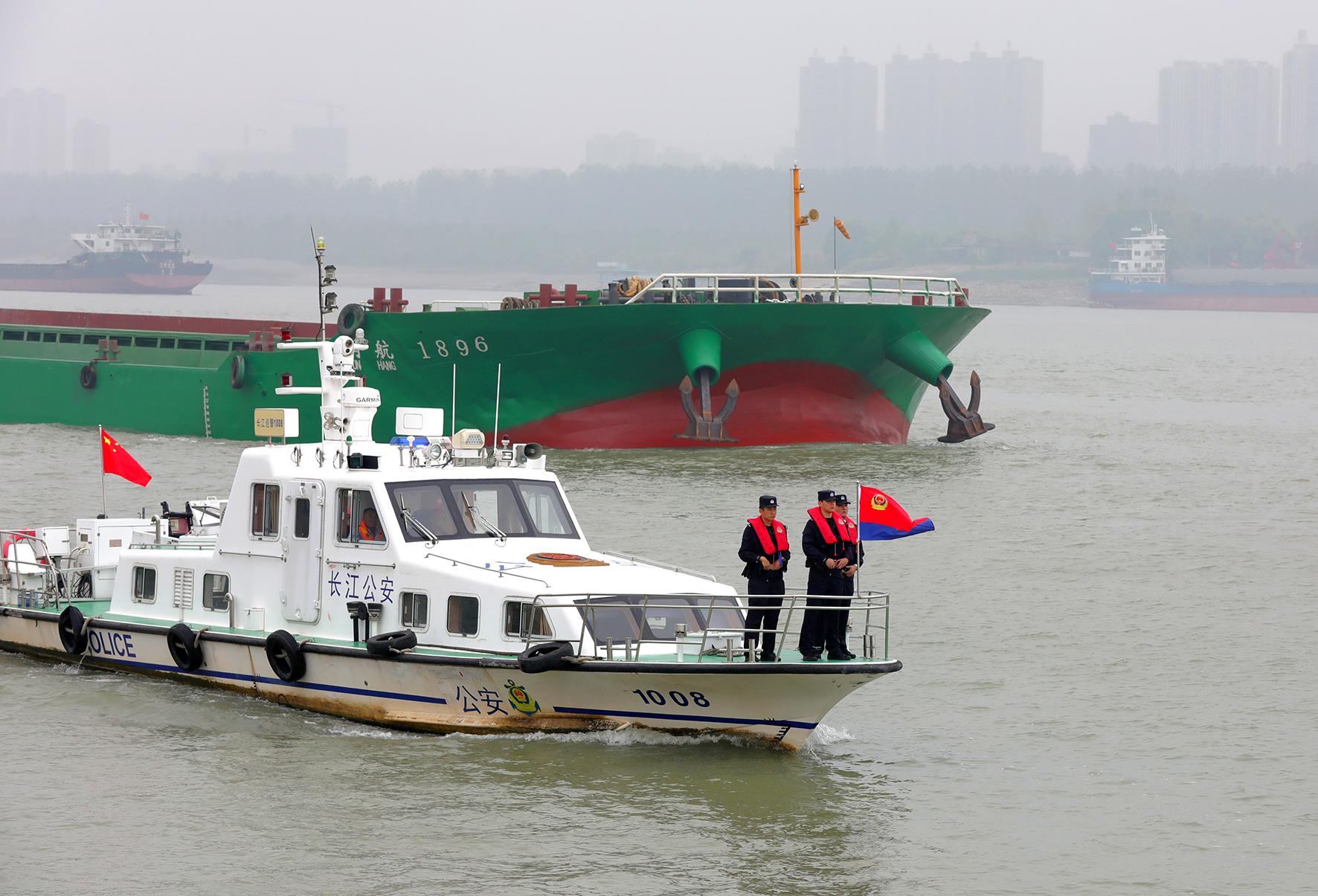 10月15日,長(zhǎng)江航運(yùn)公安局安慶分局安慶派出所民警在長(zhǎng)江安慶段開(kāi)展巡航,排查治理水上安全隱患。