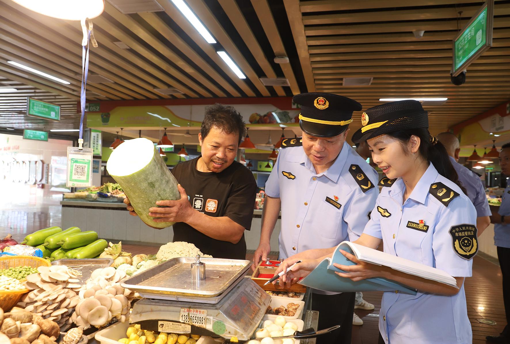 10月18日,浙江省臺(tái)州市路橋區(qū)橫街鎮(zhèn)市場(chǎng)監(jiān)督管理所執(zhí)法人員在菜市場(chǎng)里利用標(biāo)準(zhǔn)砝碼測(cè)試計(jì)量秤的精準(zhǔn)度。