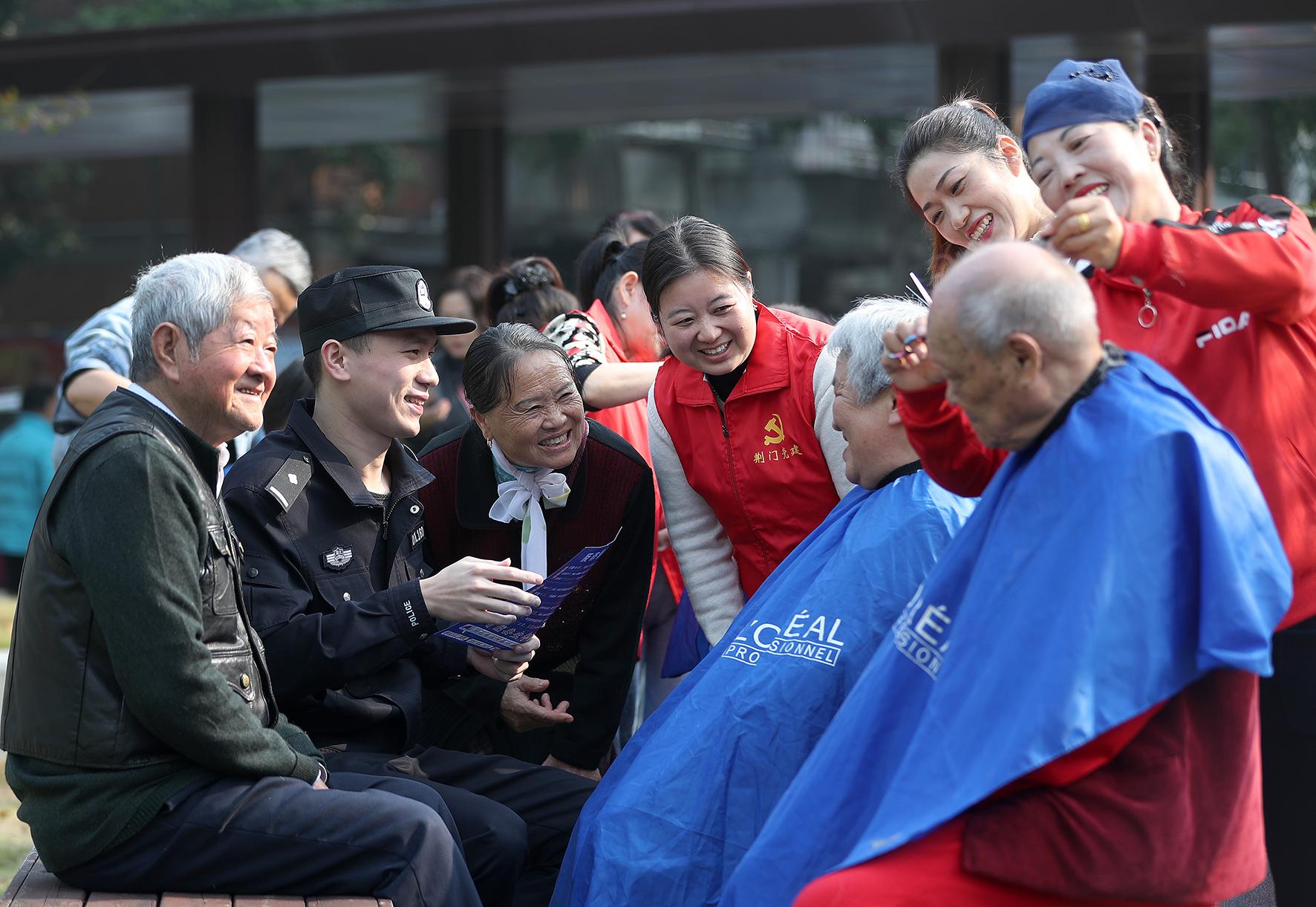 10月30日,湖北省荊門(mén)市公安局高新區(qū)·掇刀區(qū)分局白廟派出所民警和社區(qū)“反詐宣傳”志愿者在長(zhǎng)源熱電社區(qū),向老年人開(kāi)展“養(yǎng)老反詐”普法宣傳。