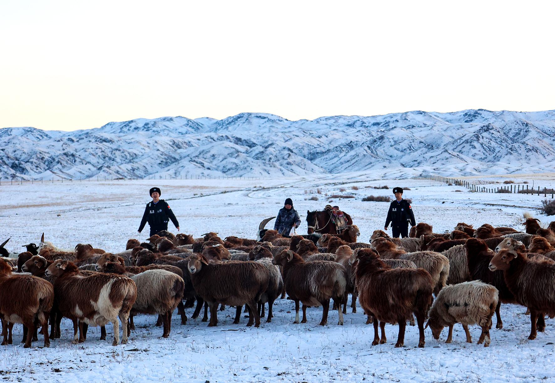 11月20日,新疆出入境邊防檢查總站阿勒泰邊境管理支隊(duì)托普鐵熱克邊境派出所民警深入牧民定居點(diǎn),了解冬季轉(zhuǎn)場路線和時(shí)間,勘察沿途路段,為牧民提供食物、藥品等物資,全程護(hù)航牧民冬季轉(zhuǎn)場。