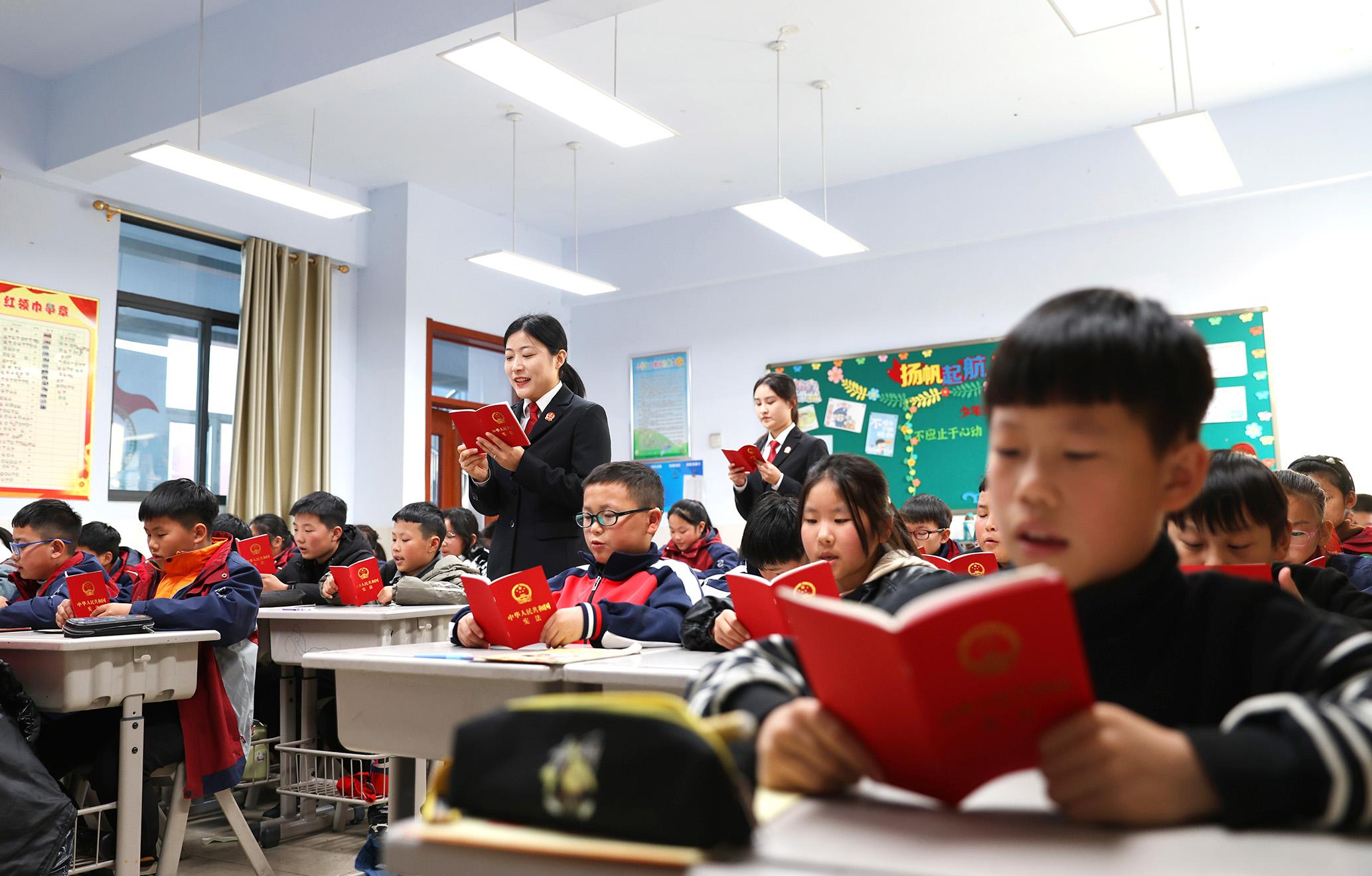12月2日,山東省臨沭縣人民法院法官助理走進青云鎮(zhèn)中心小學(xué),開展“法護青禾 與‘憲’同行”普法宣傳活動,普及憲法知識,弘揚憲法精神。