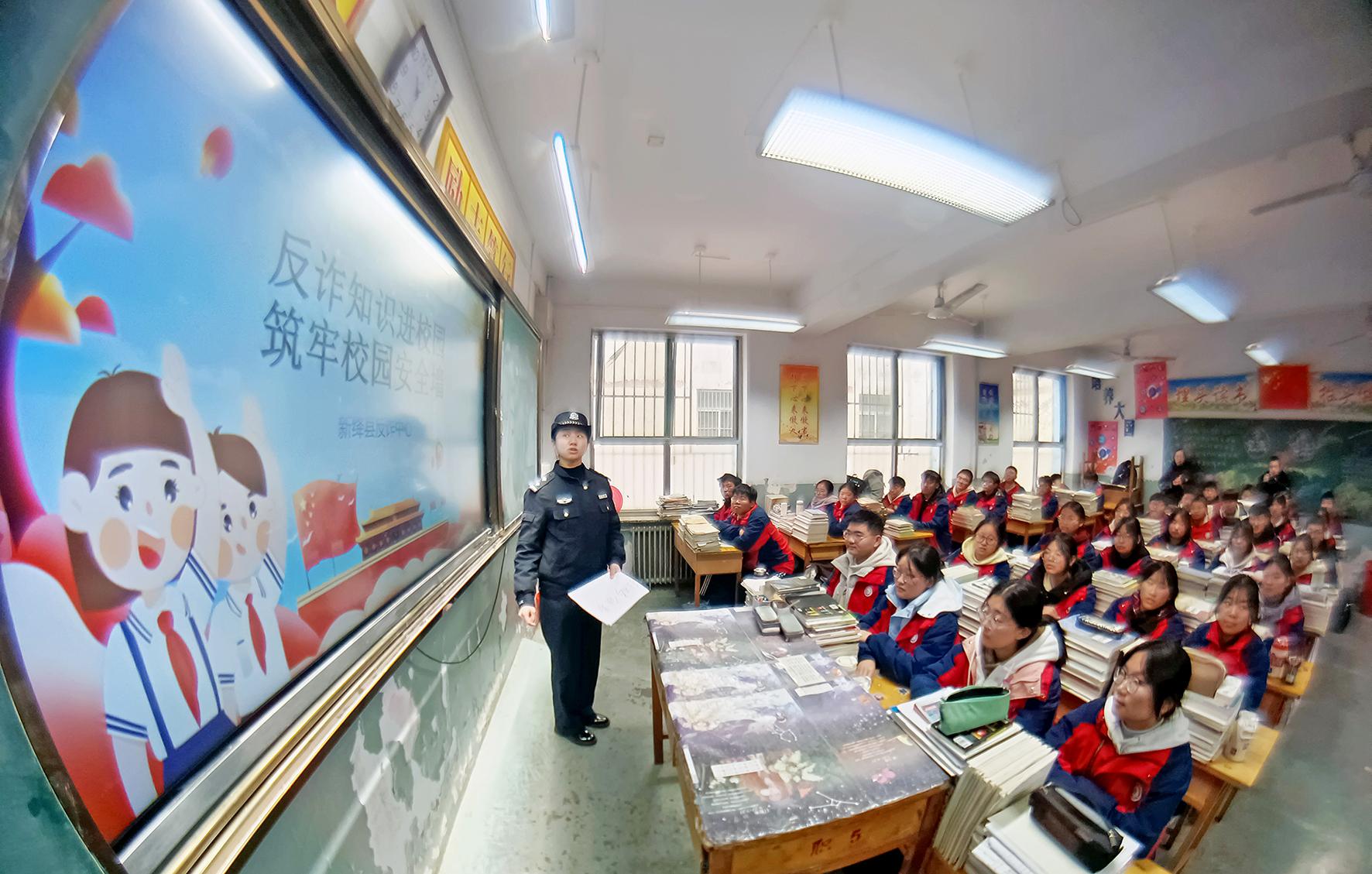 12月24日,山西省運(yùn)城市新絳縣公安局反詐中心民警在新絳縣職業(yè)教育中心開展寒假前的反詐宣傳活動。