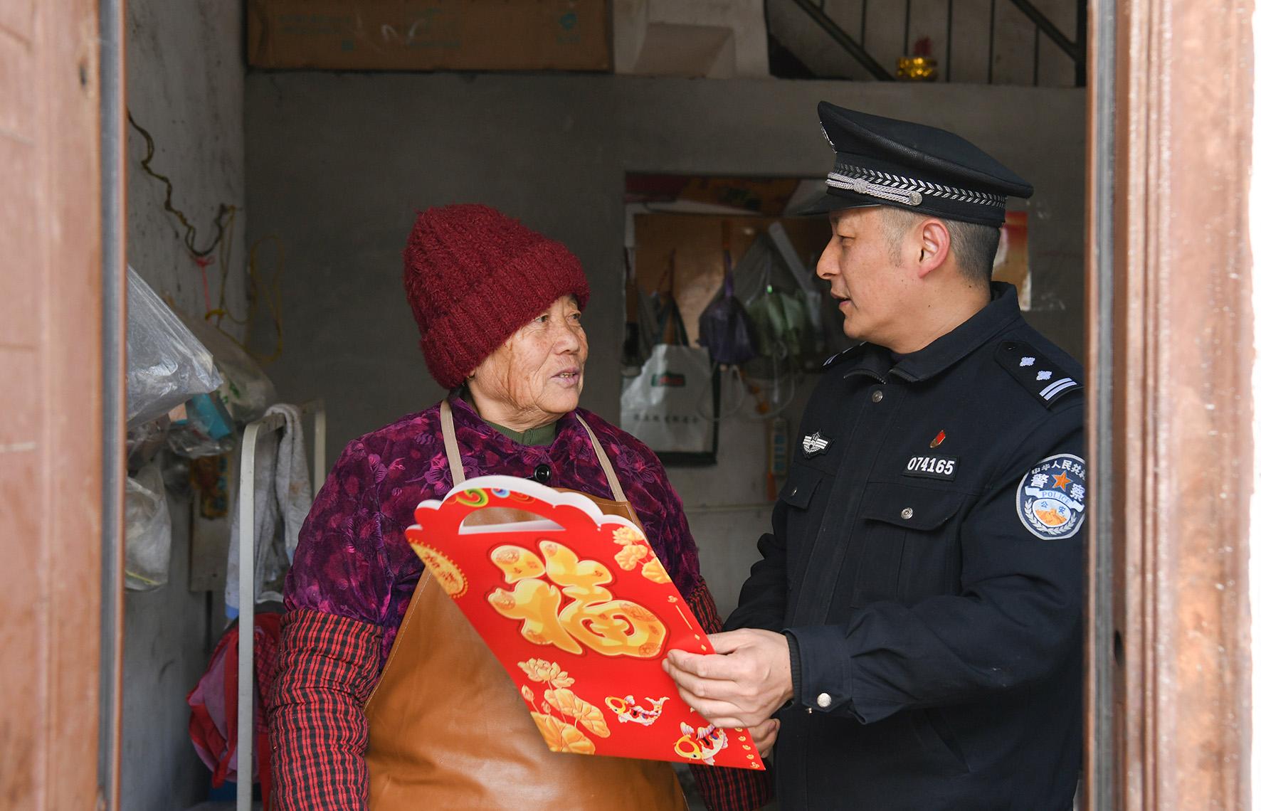 1月16日,安徽省馬鞍山市含山縣公安局環(huán)峰派出所組織民警開展“送福普法”活動。