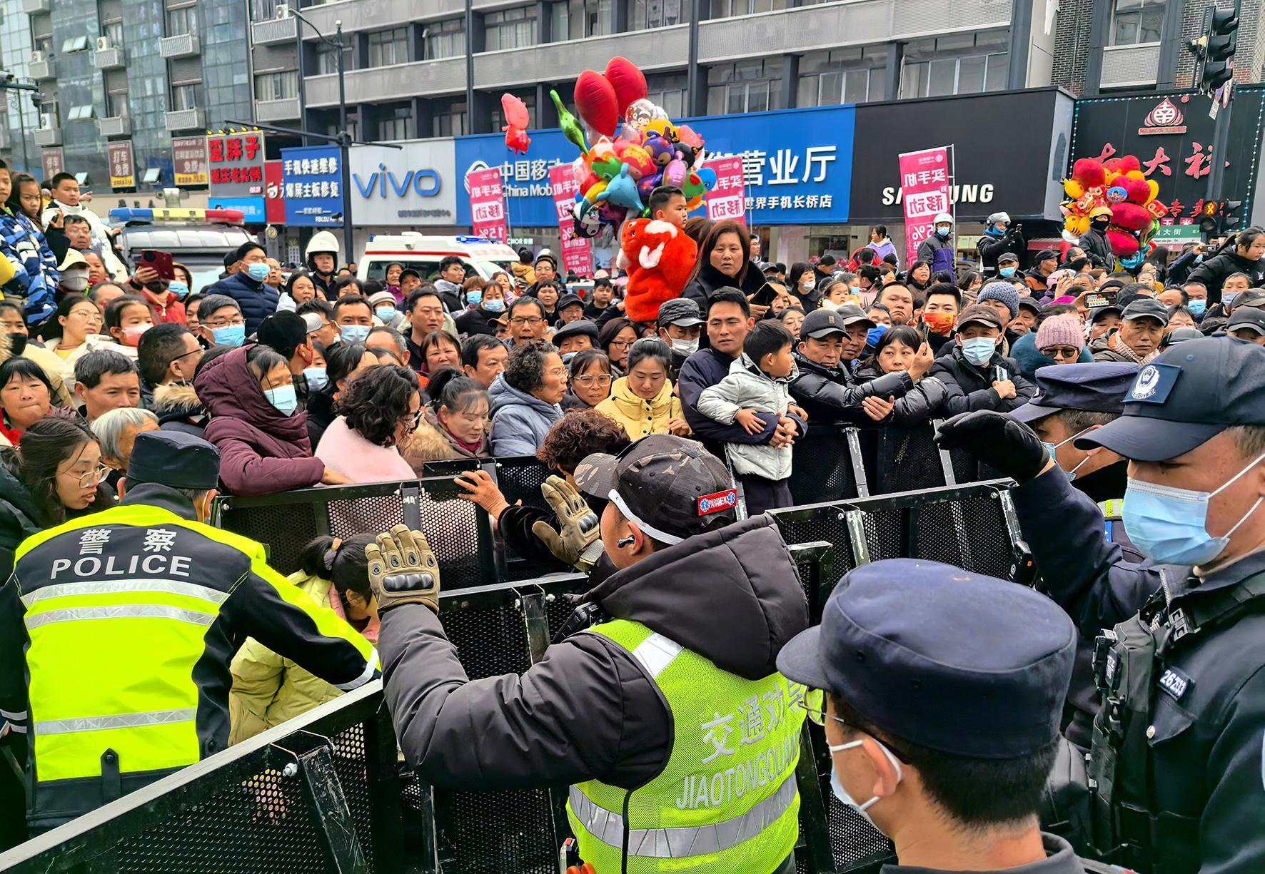 2月2日,江蘇省南通市公安局民輔警在新春民俗巡游活動(dòng)現(xiàn)場(chǎng)執(zhí)勤。