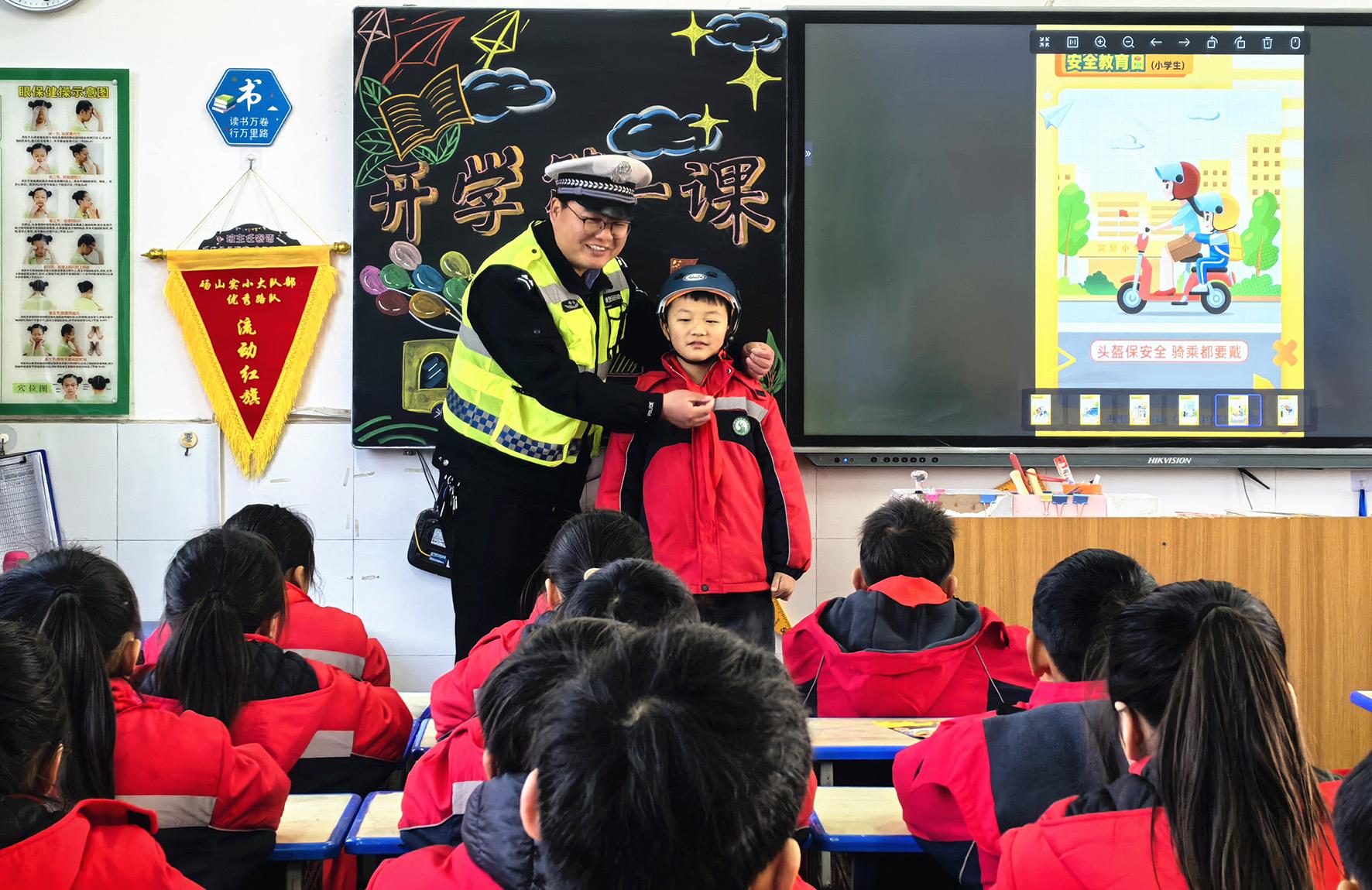 2月14日,安徽省合肥市公安局交警支隊(duì)廬陽(yáng)大隊(duì)民警走進(jìn)育新小學(xué)開展“新春開學(xué)第一課”安全宣教活動(dòng)。