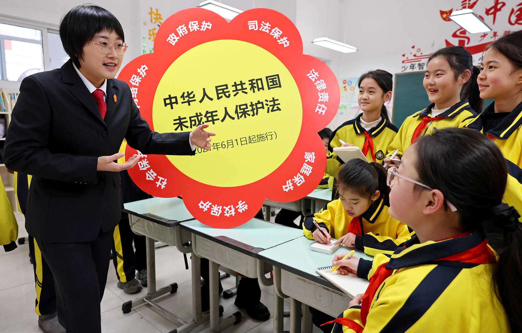 2月14日,山東省棗莊市各中小學(xué)迎來(lái)新學(xué)期開學(xué)第一天。棗莊市市中區(qū)人民法院組織法官走進(jìn)校園,為學(xué)生上好普法“第一課”,增強(qiáng)學(xué)生們的法治觀念和自我保護(hù)意識(shí)。