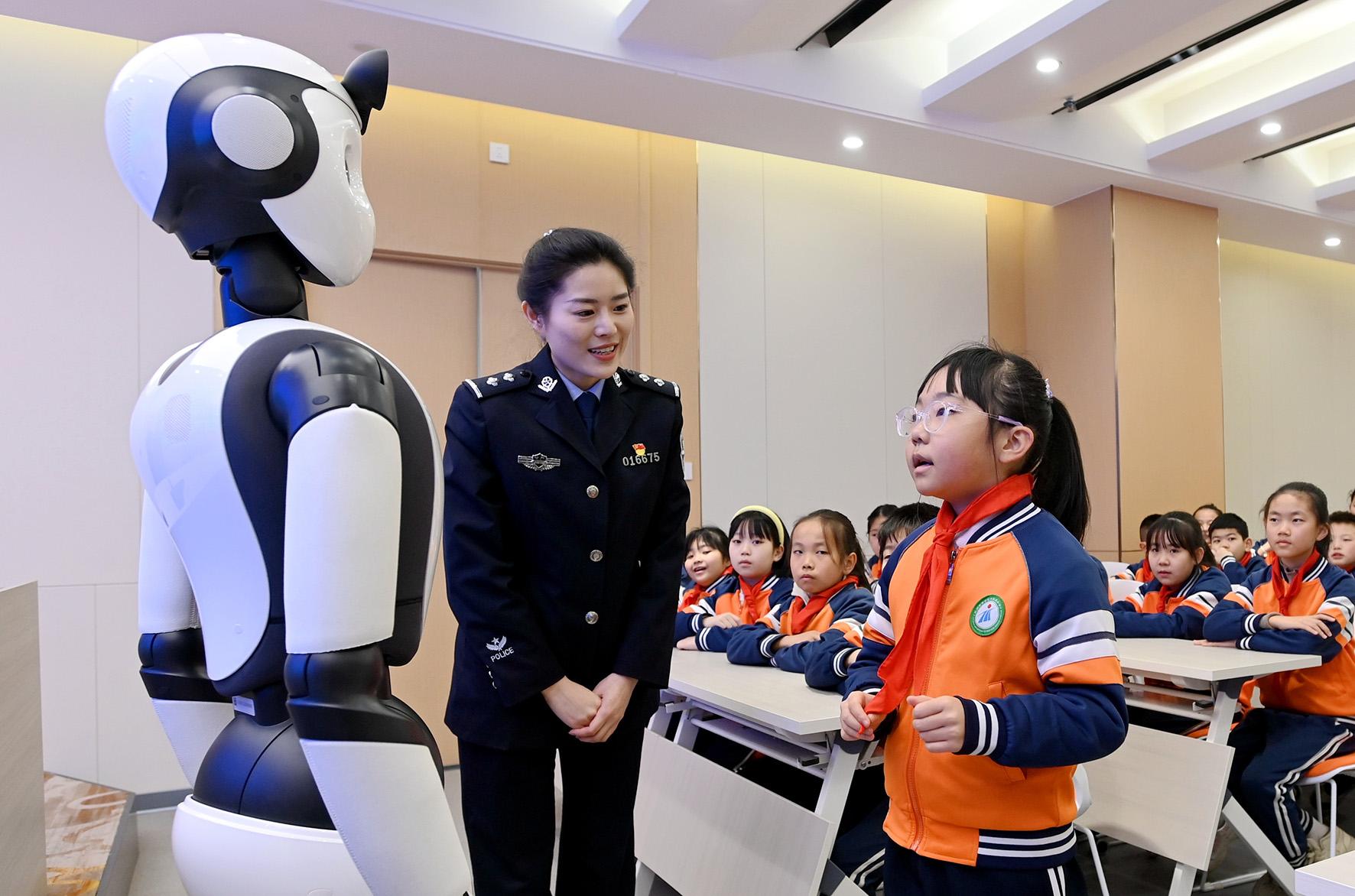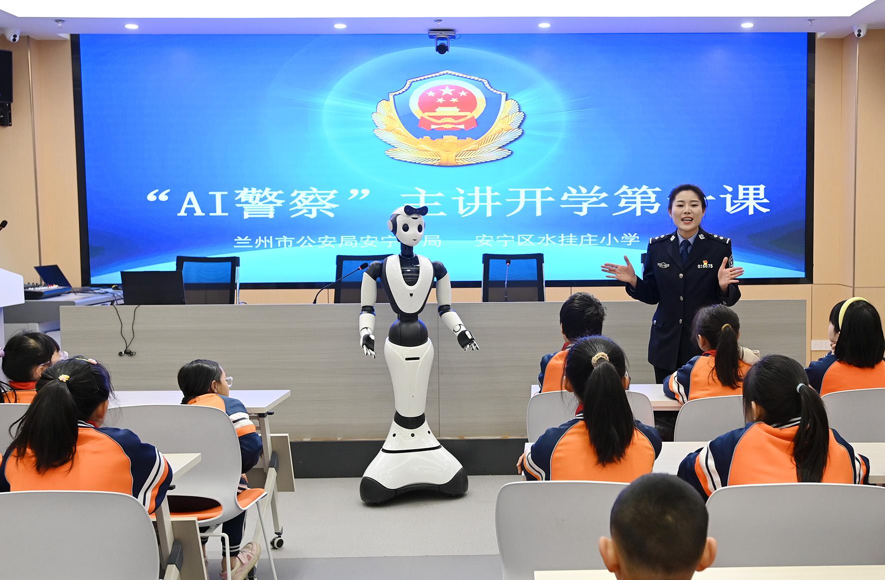 2月25日,甘肅省蘭州市公安局安寧分局“AI警察”——安小寧智能交互式機(jī)器人警官走進(jìn)水掛莊小學(xué)“開(kāi)學(xué)第一課”大講堂,以童趣化智能交互式體驗(yàn)方式為師生講解校園安全、自我保護(hù)、反詐禁毒等知識(shí)。