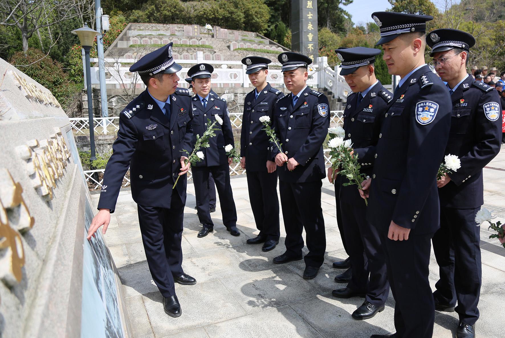 4月2日,安徽省廣德市公安局組織青年民警到烈士陵園,開展“致敬·緬懷·奮進”清明紀念英烈活動。