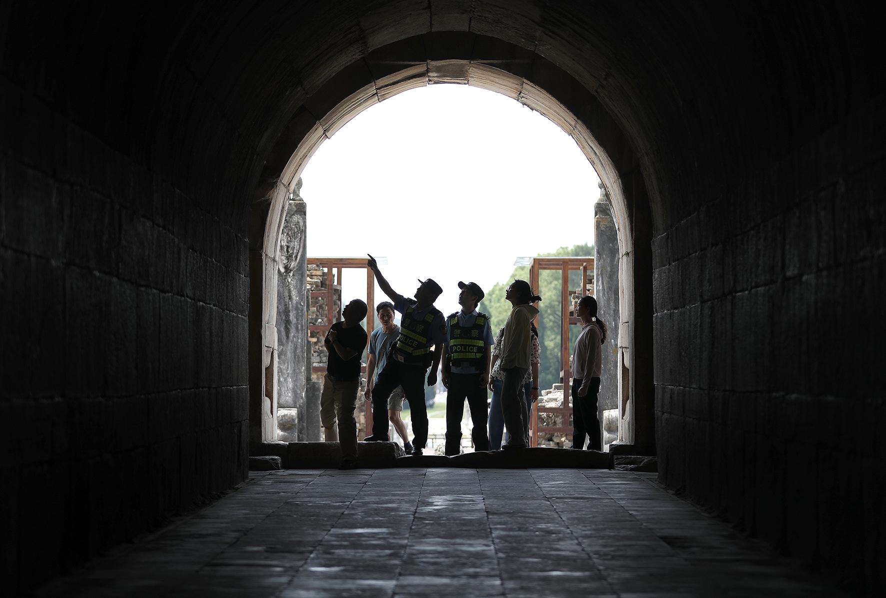 5月13日,在世界文化遺產(chǎn)湖北省鐘祥市明顯陵,鐘祥市公安局皇莊水陸派出所民警在巡查過(guò)程中化身“普法導(dǎo)游”,一邊為游客介紹明代皇家陵寢的獨(dú)特魅力,一邊積極宣傳新修訂的《中華人民共和國(guó)文物保護(hù)法》知識(shí)。