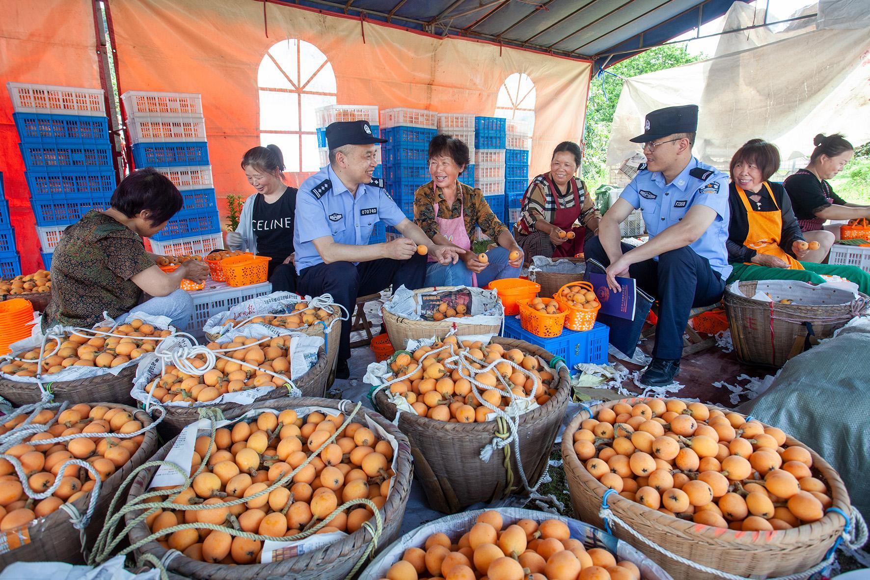 5月15日,浙江省臺(tái)州市公安局黃巖分局江口派出所民警在東岙村枇杷收購點(diǎn)走訪,掌握轄區(qū)治安情況,幫助群眾解決實(shí)際困難。