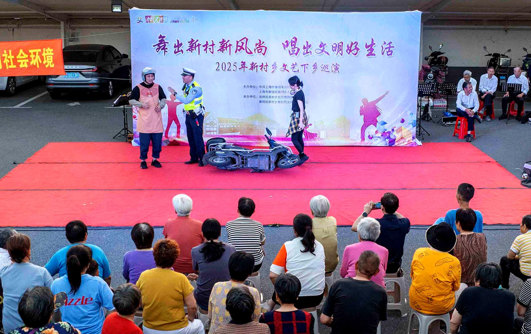 5月20日傍晚,上海市公安局崇明分局交管支隊民警輔警來到轄區(qū)新村鄉(xiāng)開展“美麗鄉(xiāng)村行”文藝下鄉(xiāng)巡演活動。