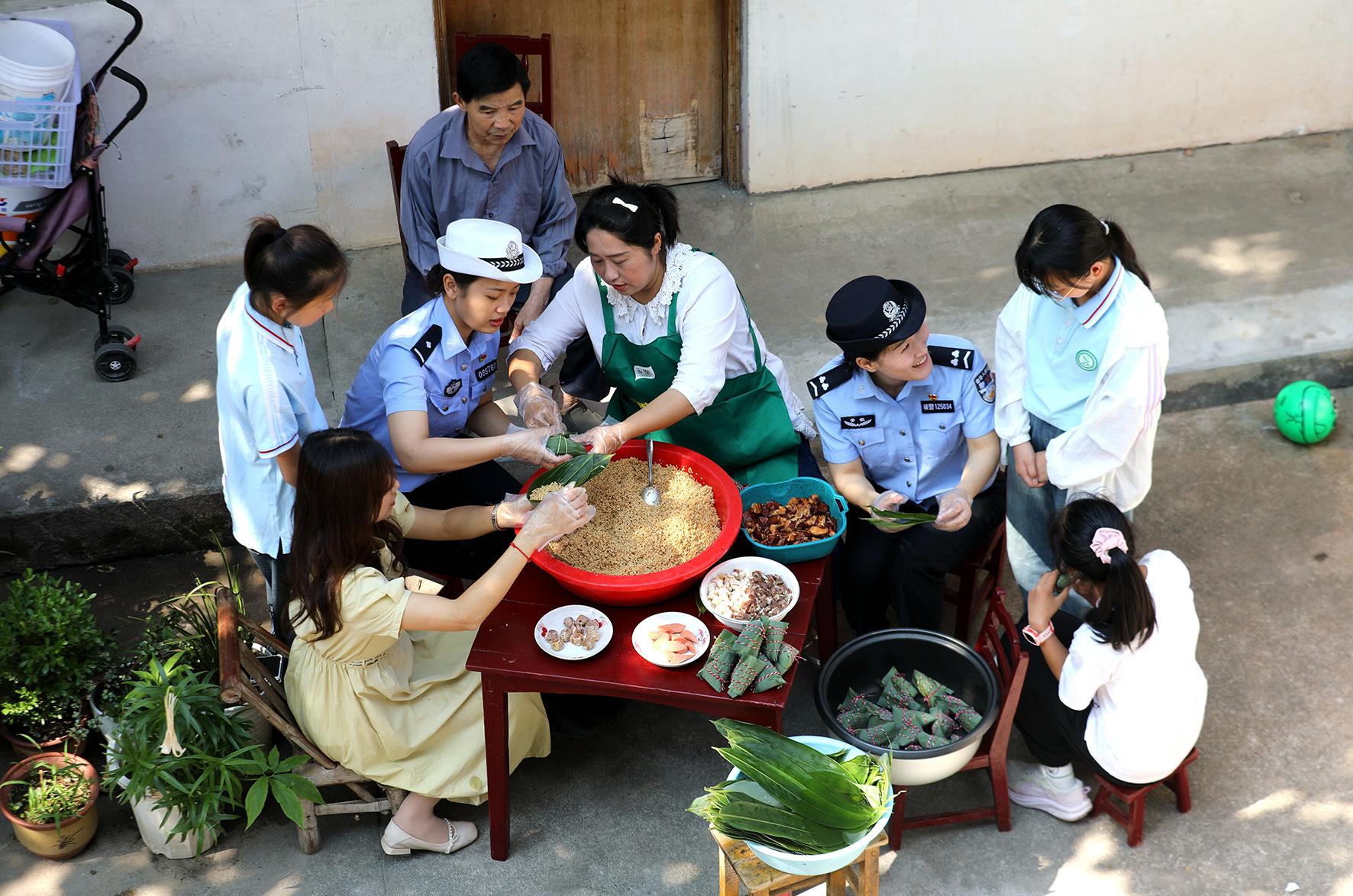 5月29日,安徽省舒城縣公安局交管大隊、舒茶派出所聯(lián)合溝二口村婦聯(lián)走進轄區(qū)村民家,開展“迎‘端午’話平安”活動。