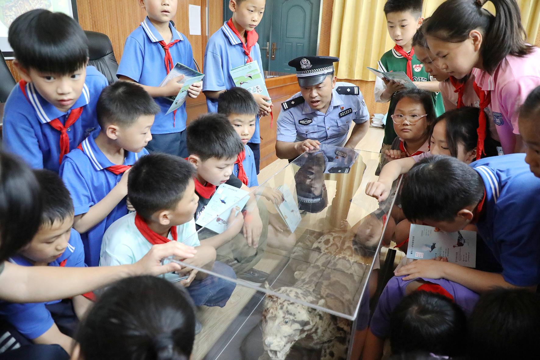 6月18日,江西省九江市公安局濂溪分局妙智派出所民警聯(lián)合廬山國家級自然保護(hù)區(qū)管理局工作人員來到轄區(qū)愛蓮小學(xué)開展“保護(hù)野生動物 共享綠色生態(tài)”普法宣傳活動。