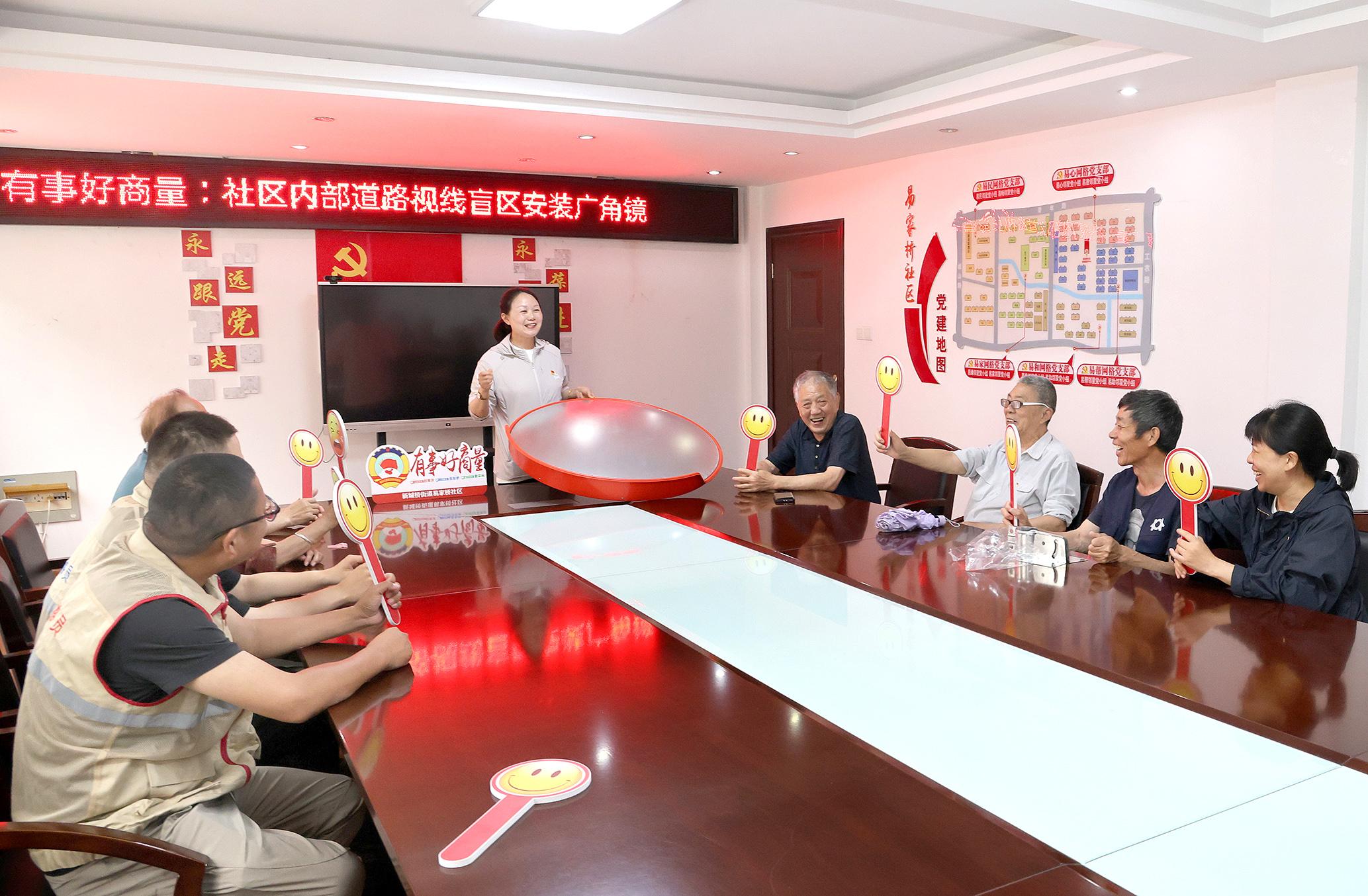 6月23日,江蘇省南通市崇川區(qū)新城橋街道易家橋社區(qū)“有事好商量”議事室就“社區(qū)內(nèi)部道路視線盲區(qū)安裝廣角鏡”開(kāi)展協(xié)商議事。最終在各方努力下廣角鏡安裝到位,消除了行駛車(chē)輛的視線盲區(qū)和安全隱患。