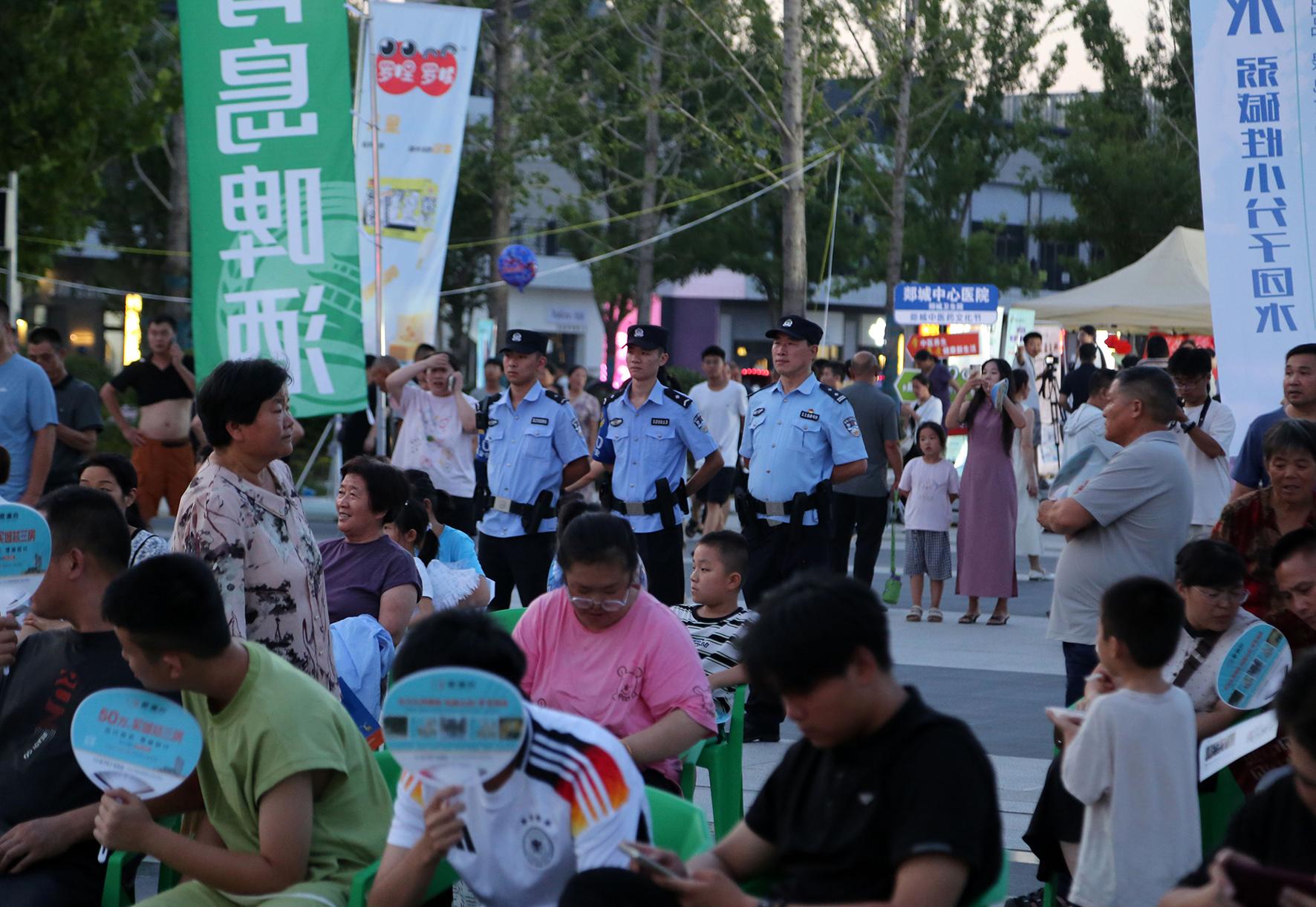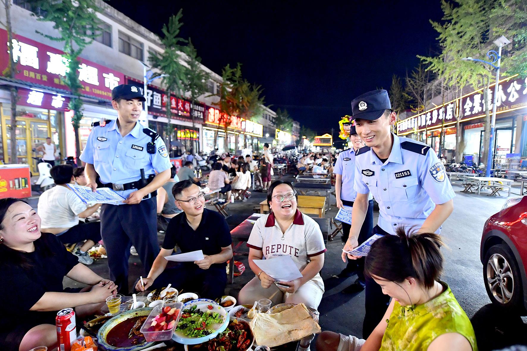 7月27日,山東省郯城縣公安局開啟“夜間警務(wù)”模式,民輔警在人流密集區(qū)執(zhí)勤。