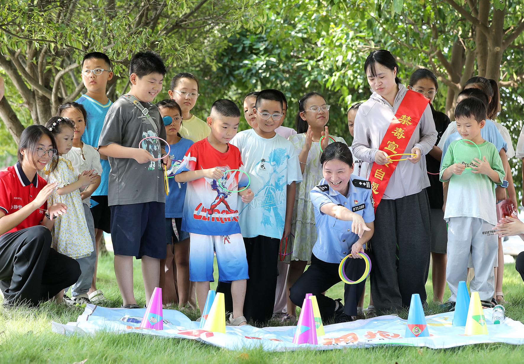 7月28日,湖北省荊門市沙洋縣公安局民警走進洪嶺社區(qū)“愛心托管班”,以趣味互動游戲為載體,向青少年開展防溺水、預防校園欺凌及禁毒知識宣傳,讓孩子們在歡樂中提升自我保護能力。