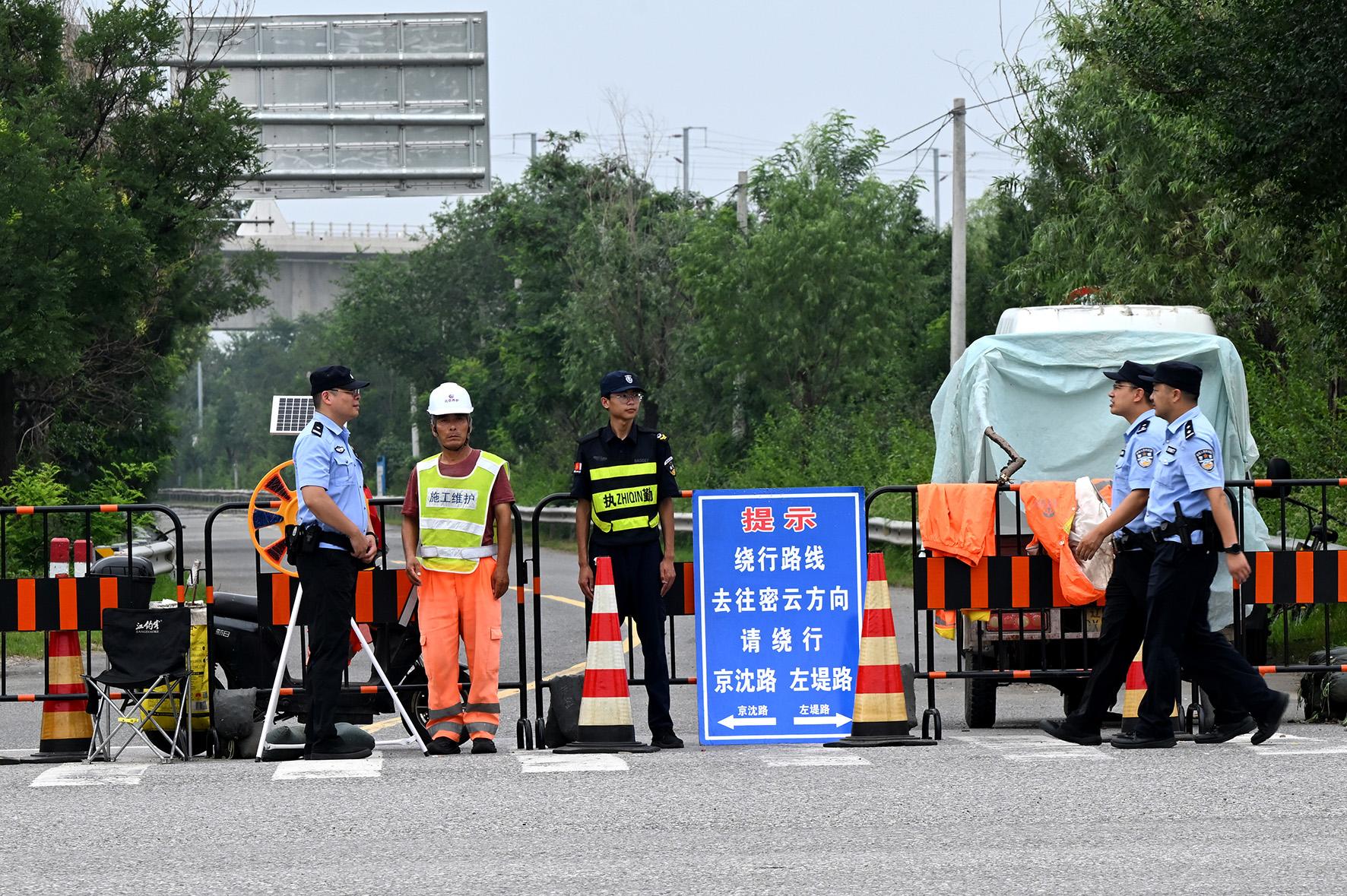 8月4日,北京市公安局懷柔分局楊宋派出所民警對仍處于交通管控狀態(tài)的潮白河右堤路進(jìn)行巡查。