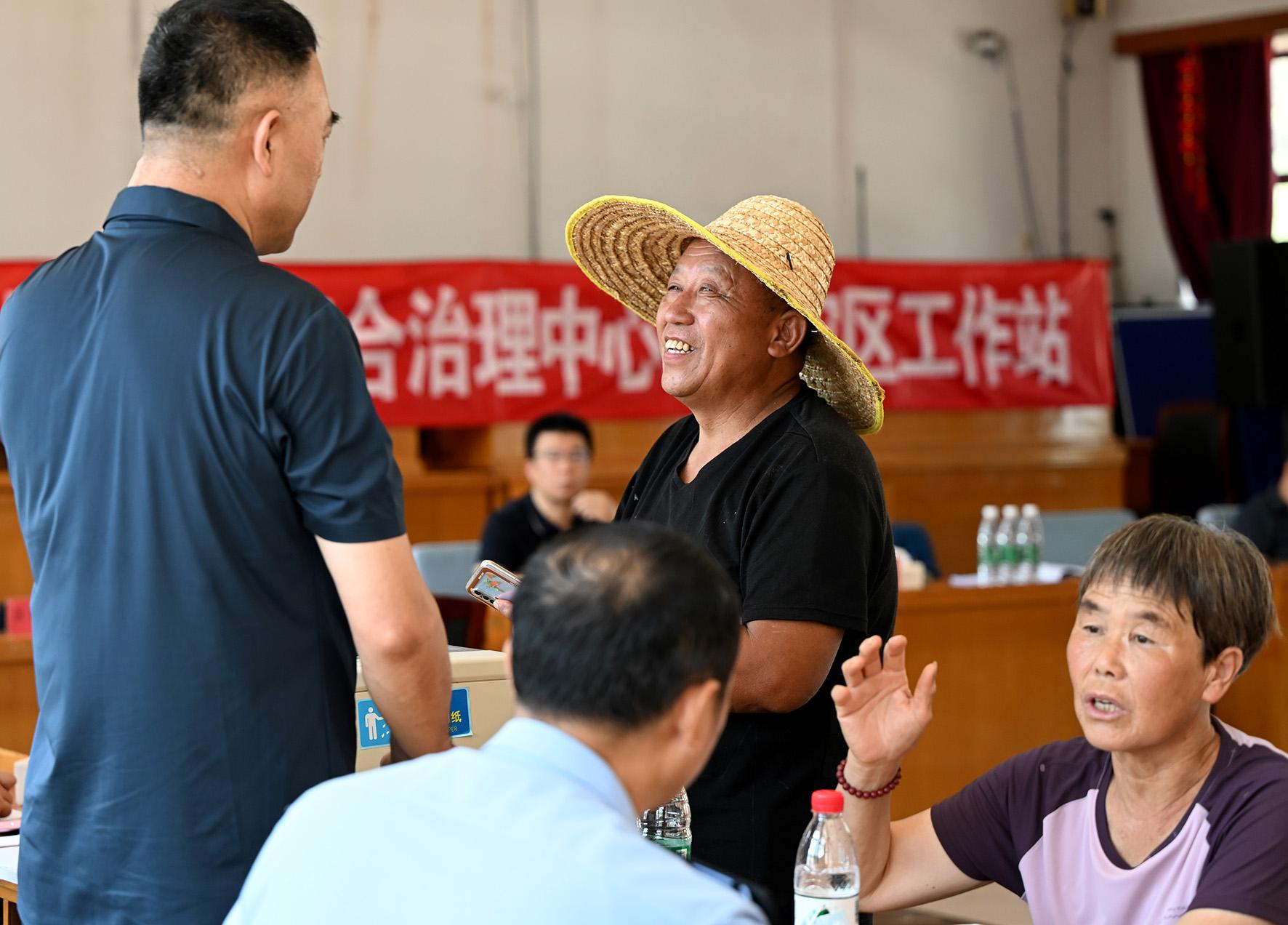 8月6日,臨時(shí)“綜治中心”秩序井然,懷柔區(qū)人民法院、北京市公安局懷柔分局、懷柔區(qū)司法局、懷柔區(qū)農(nóng)業(yè)農(nóng)村局等職能部門窗口的工作人員都耐心回應(yīng)著村民的每一個(gè)訴求。