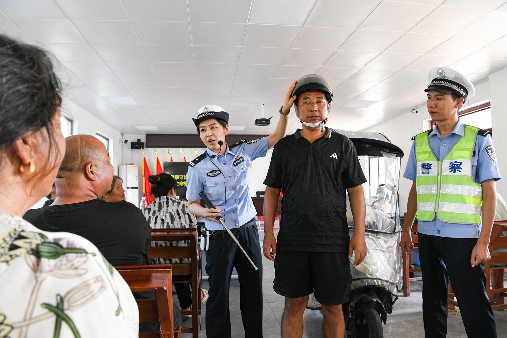 9月4日,安徽省馬鞍山市含山縣公安局交管大隊民警走進(jìn)銅閘鎮(zhèn)大馬行政村,開展“美麗鄉(xiāng)村行”交通安全巡回宣傳活動,將安全知識送到村民家門口。