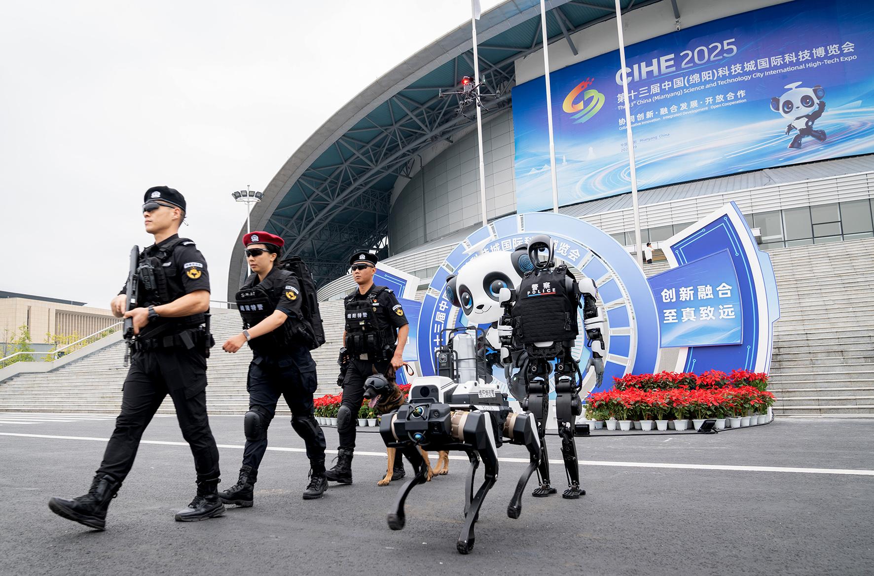 9月26日,第十三屆中國(guó)綿陽(yáng)科技城國(guó)際科技博覽會(huì)開幕。四川省綿陽(yáng)市公安局組織警力,全力筑牢科博會(huì)安全屏障。值得一提的是,警用機(jī)器狗、人形巡邏機(jī)器人、無(wú)人巡邏車及空中無(wú)人機(jī)的加入,為巡邏防控工作注入了全新的科技活力。