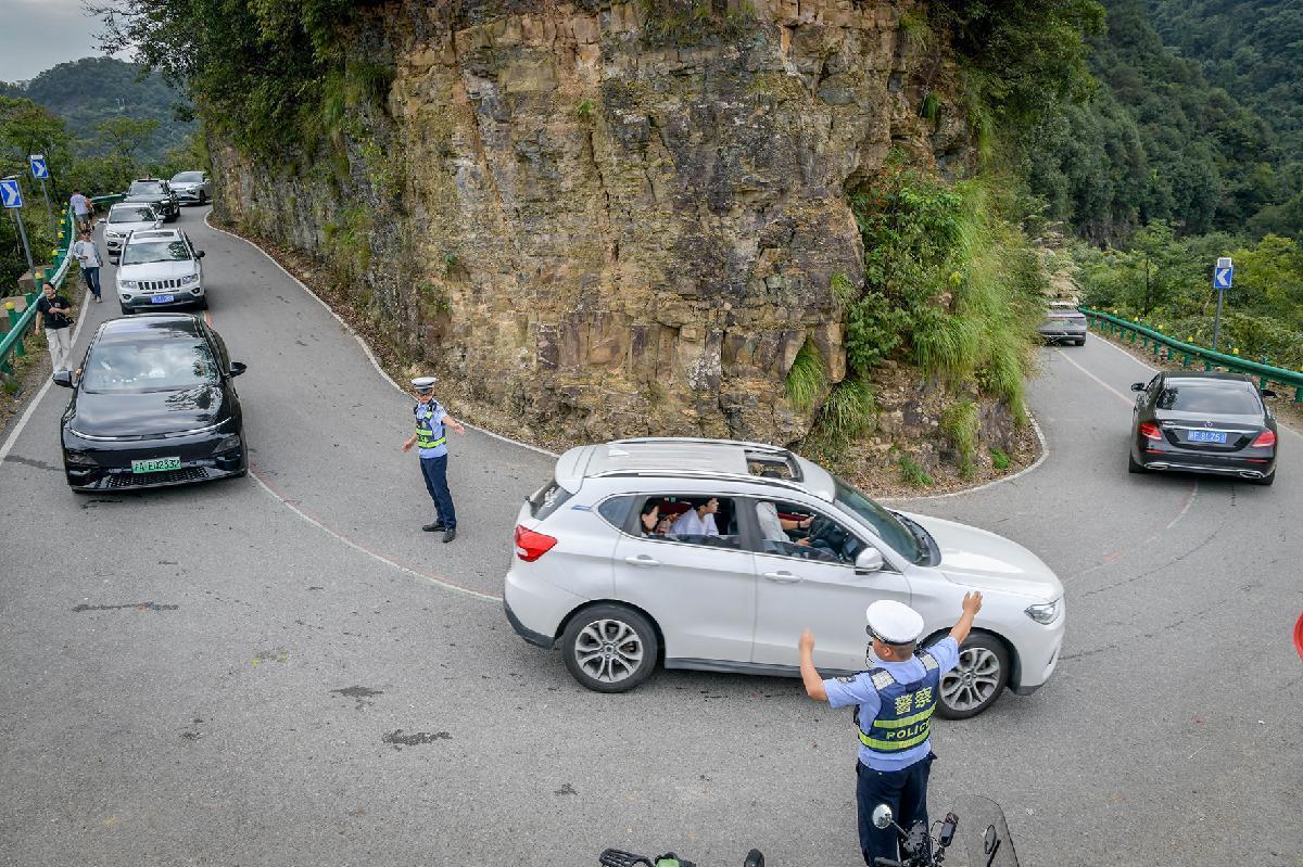 10月2日,安徽涇縣“皖南川藏線”迎來客流高峰。涇縣公安局全警動員,采取“機(jī)動+定點(diǎn)”的工作方式,在易堵彎道、觀景臺等關(guān)鍵部位派駐警力駐點(diǎn)執(zhí)勤。