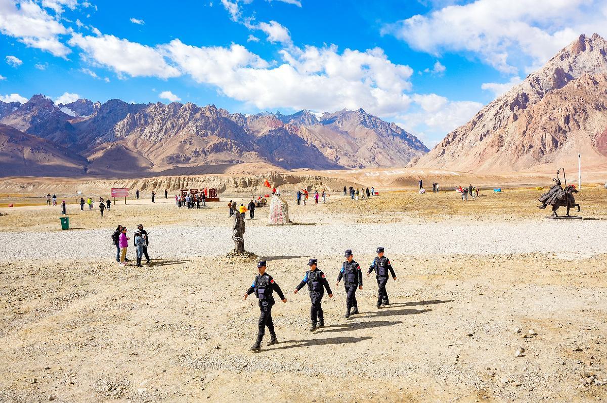 10月1日,新疆喀什邊境管理支隊(duì)塔什庫爾干邊境管理大隊(duì)在轄區(qū)各個景區(qū)部署警力,為游客安全出行保駕護(hù)航。