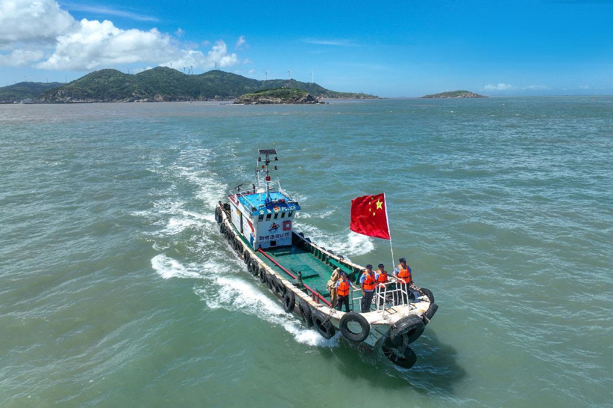 10月1日,浙江省舟山市岱山縣公安局羅家岙派出所民警堅(jiān)守崗位,乘坐“紅帆110”船開展海上巡查行動,守護(hù)轄區(qū)平安。