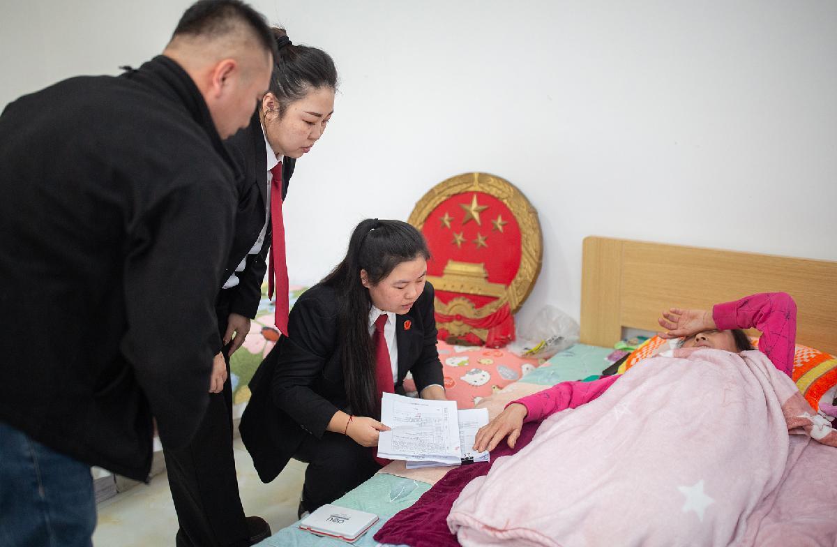 11月4日,吉林省四平市鐵西區(qū)人民法院英雄法庭工作人員上門為一名肢體殘疾的當事人辦理立案手續(xù)。