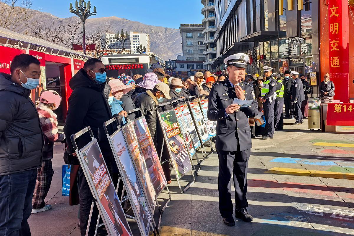 12月2日,西藏自治區(qū)山南市公安局交通管理支隊(duì)民警走進(jìn)轄區(qū)廣場開展“全國交通安全日”主題宣傳。