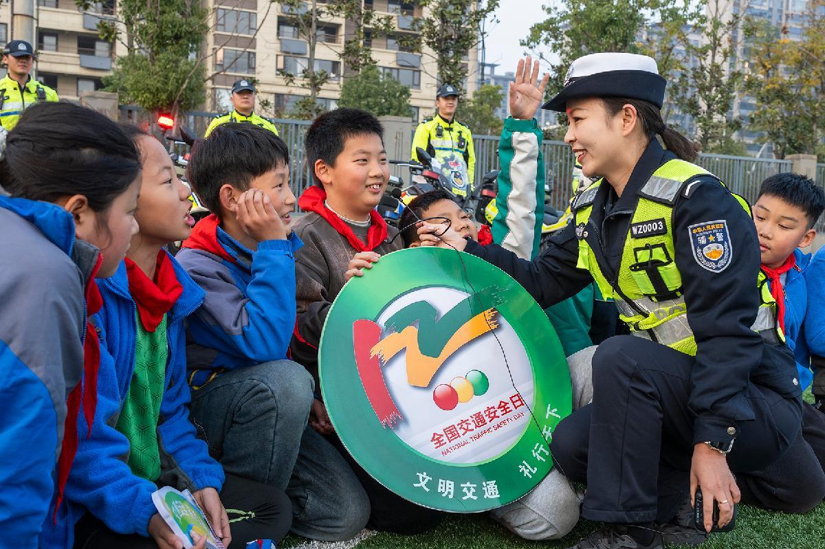 12月2日是第十四個“全國交通安全日”,貴州省赤水市公安局交警大隊(duì)民警走進(jìn)校園,向小朋友們普及交通安全知識。