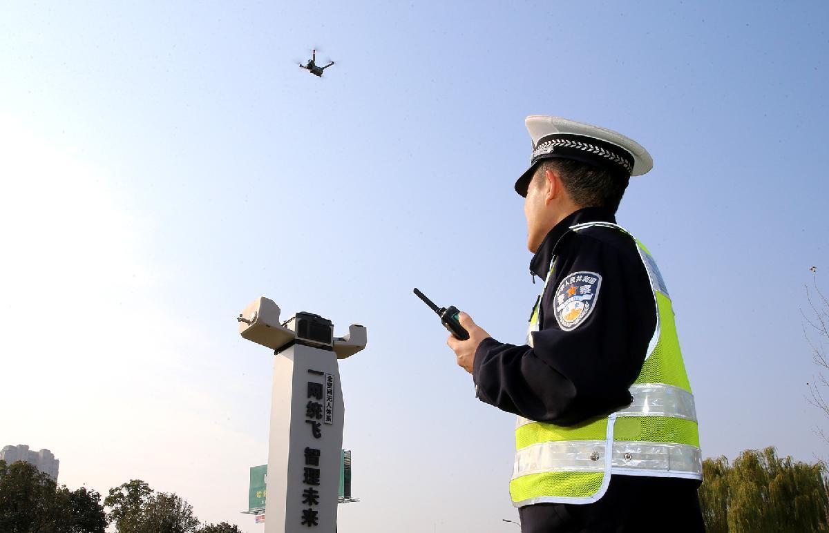 圖為警用無(wú)人機(jī)從首批部署的無(wú)人機(jī)機(jī)巢起飛巡查。