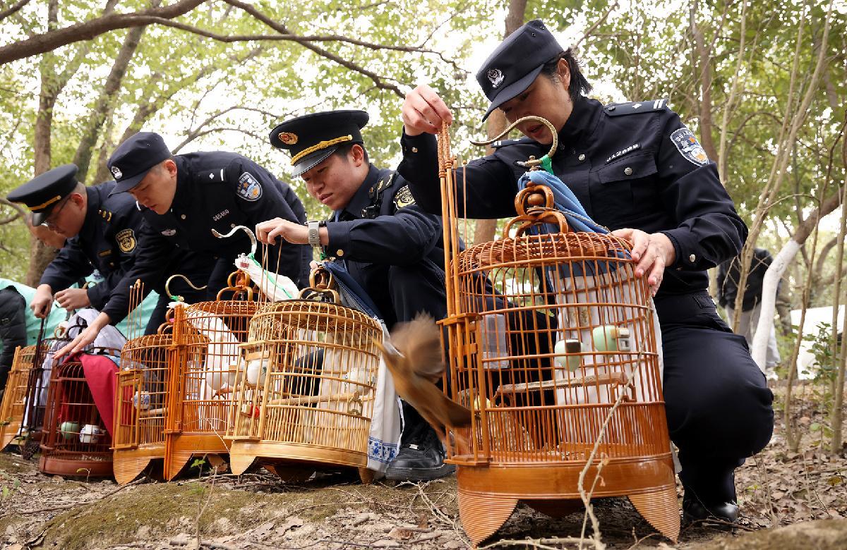 1月4日,浙江省嘉興市公安局南湖區(qū)分局環(huán)境資源和食品藥品犯罪偵查大隊聯(lián)合區(qū)綜合執(zhí)法局、區(qū)自然資源和規(guī)劃局,將依法查獲的12只國家二級保護(hù)動物畫眉鳥成功放歸大自然。