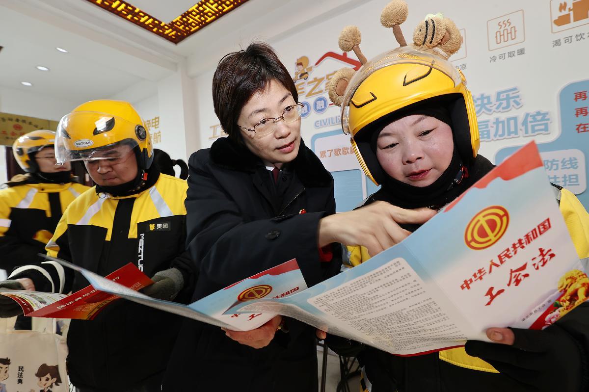 1月7日,安徽省淮北市總工會(huì)邀請(qǐng)淮北市人民檢察院檢察官走進(jìn)工會(huì)驛站,結(jié)合勞動(dòng)爭(zhēng)議解決、勞動(dòng)權(quán)益保障、法律援助等問(wèn)題,向快遞外賣(mài)員等新就業(yè)群體宣傳工會(huì)法。
