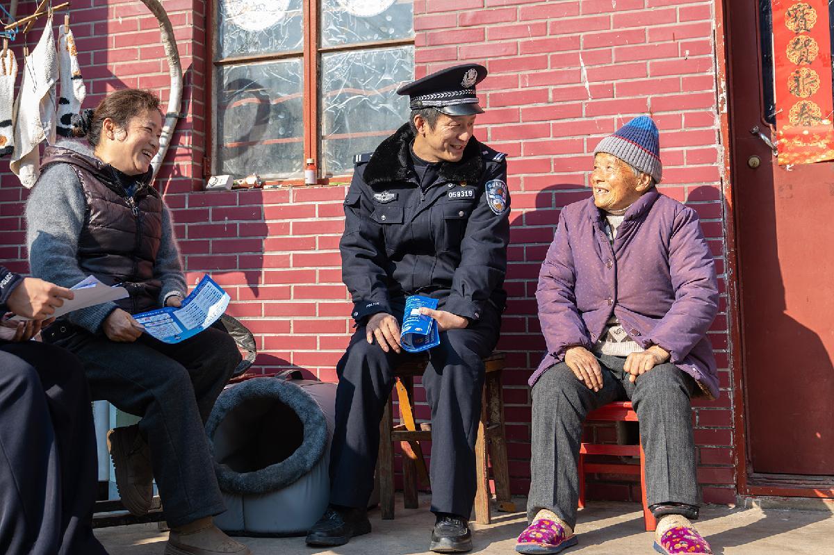 圖為民警與轄區(qū)農(nóng)戶促膝長談,傾聽意見建議。