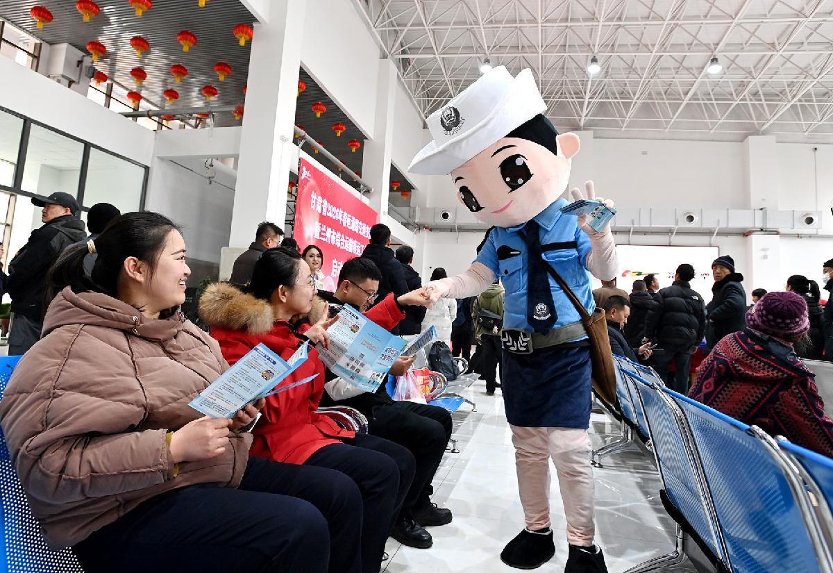 2月2日,甘肅省蘭州市公安局在蘭州市汽車新東站開展春運(yùn)啟動(dòng)日安全宣傳。