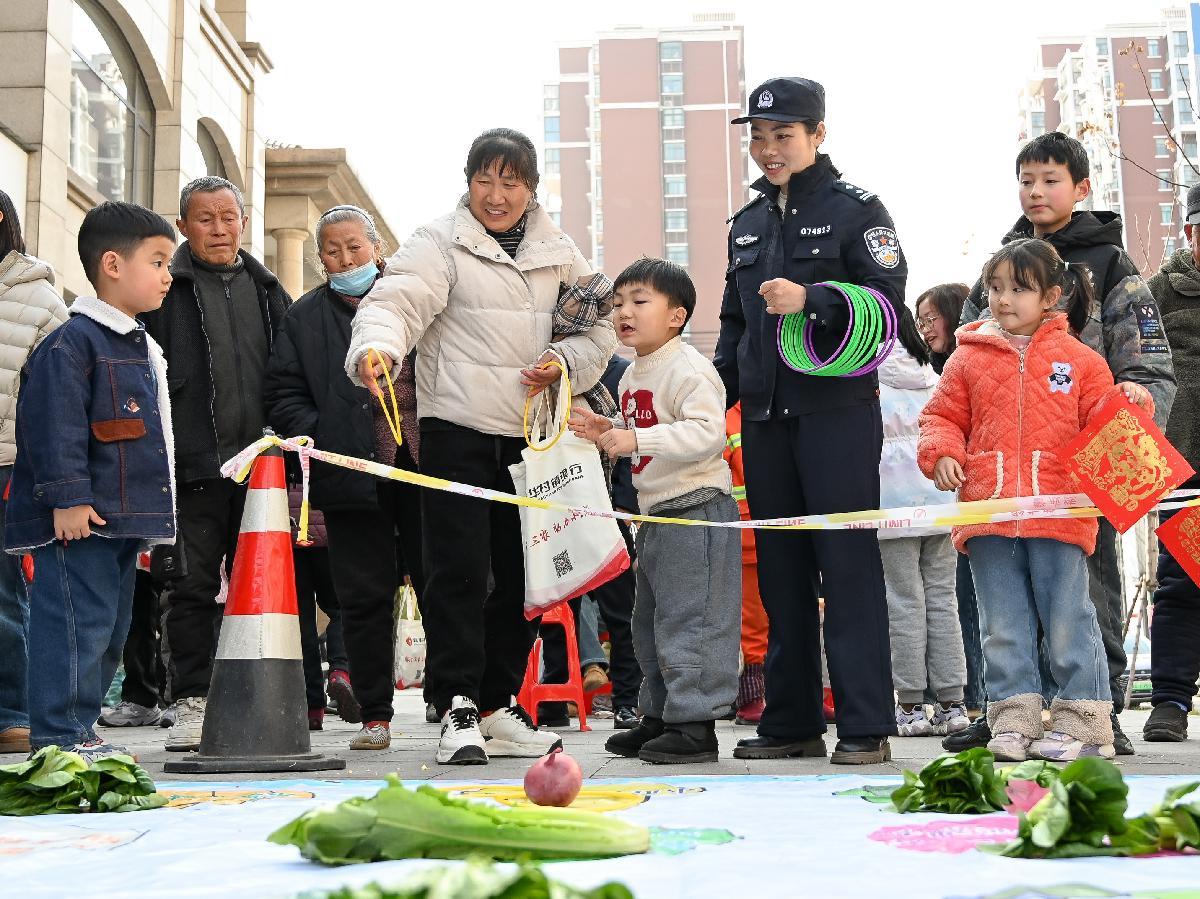 2月5日,安徽省馬鞍山市和縣公安局民警在禹錫社區(qū)開展“套圈”有獎(jiǎng)趣味活動(dòng),讓群眾在寓教于樂中提升防騙識(shí)騙能力。
