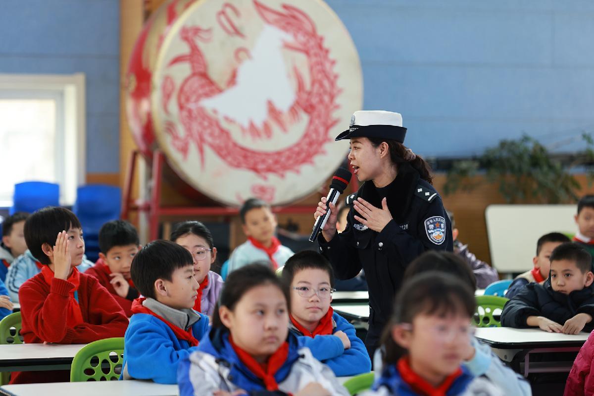 2月26日,甘肅省蘭州市公安局安寧分局組織交管大隊(duì)和銀灘路派出所民警走進(jìn)轄區(qū)陽(yáng)光小學(xué),開(kāi)展“開(kāi)學(xué)第一課”法治宣傳。